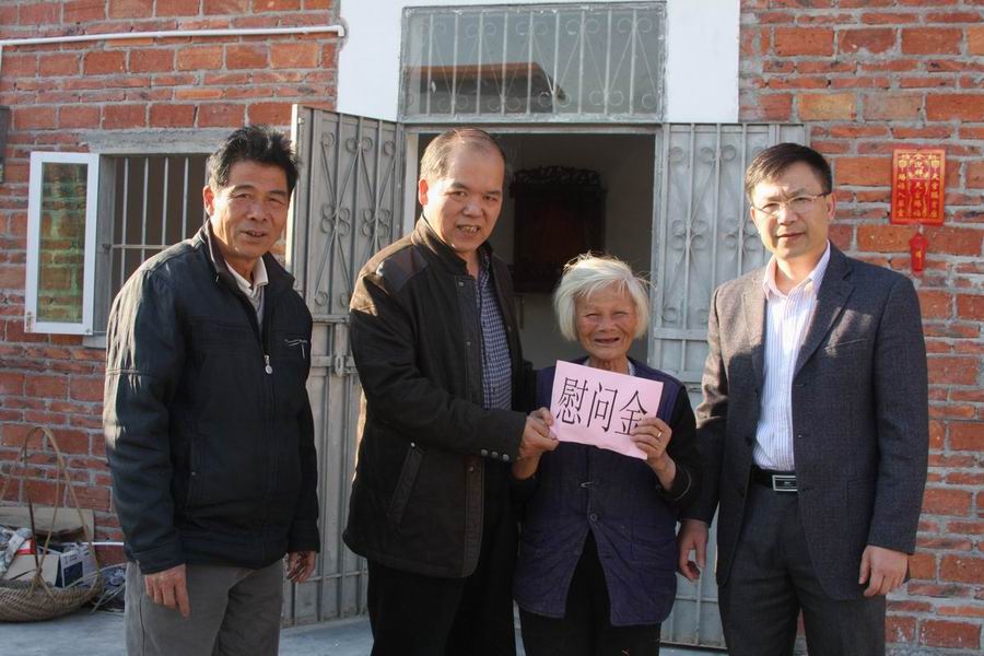 近日,市政协副主席黄继烨带领市文广新局、市供销社、市邮政局、中国银行开平支行、人保财险开平支公司等5个帮扶单位主要领导、分管领导、驻村干部等一行10多人,深入到挂钩扶贫点马冈镇红丰村委会,开展扶贫调研工作,走访慰问了结对帮扶的7户贫困户,给贫困户送上慰问金和慰问物品。 在红丰六圩村贫困户梁伟能家中,黄继烨副主席代表扶贫组给梁伟能一家送上了节日慰问金和慰问品,并与梁伟能一家进行了亲切交谈,祝福他们新春快乐。黄继烨副主席还发动热心企业向因灾房屋倒塌困难户关菊英捐赠1.7万元用以装修房子,并祝福他们安度新春。 其他帮扶单位也分别到挂钩帮扶的困难户家中进行了慰问。驻村干部阚洪锋自己出钱给梁伟能家庭送来了一台新的冰箱,这种助人为乐的精神,受到大家的敬佩。红丰村委会和各困难户对帮扶组表达了衷心感谢。(市文广新局) 给困难户送上慰问金 给村委会送上慰问金