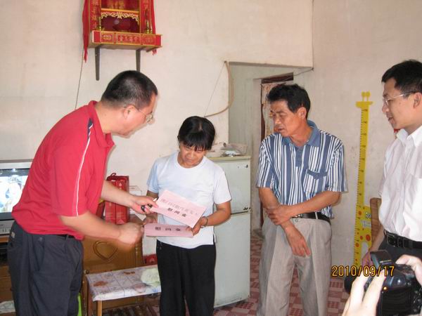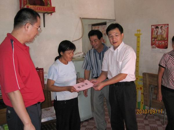 2010年9月17日上午,市文广新局局长谭伟强、纪检组长张雪惠和办公室主任梁艳萍,前往挂钩帮扶的马冈镇红丰村委会,了解“规划到村责任到人”扶贫开发工作开展情况,并走访慰问了3户贫困户,给他们送去慰问物品。