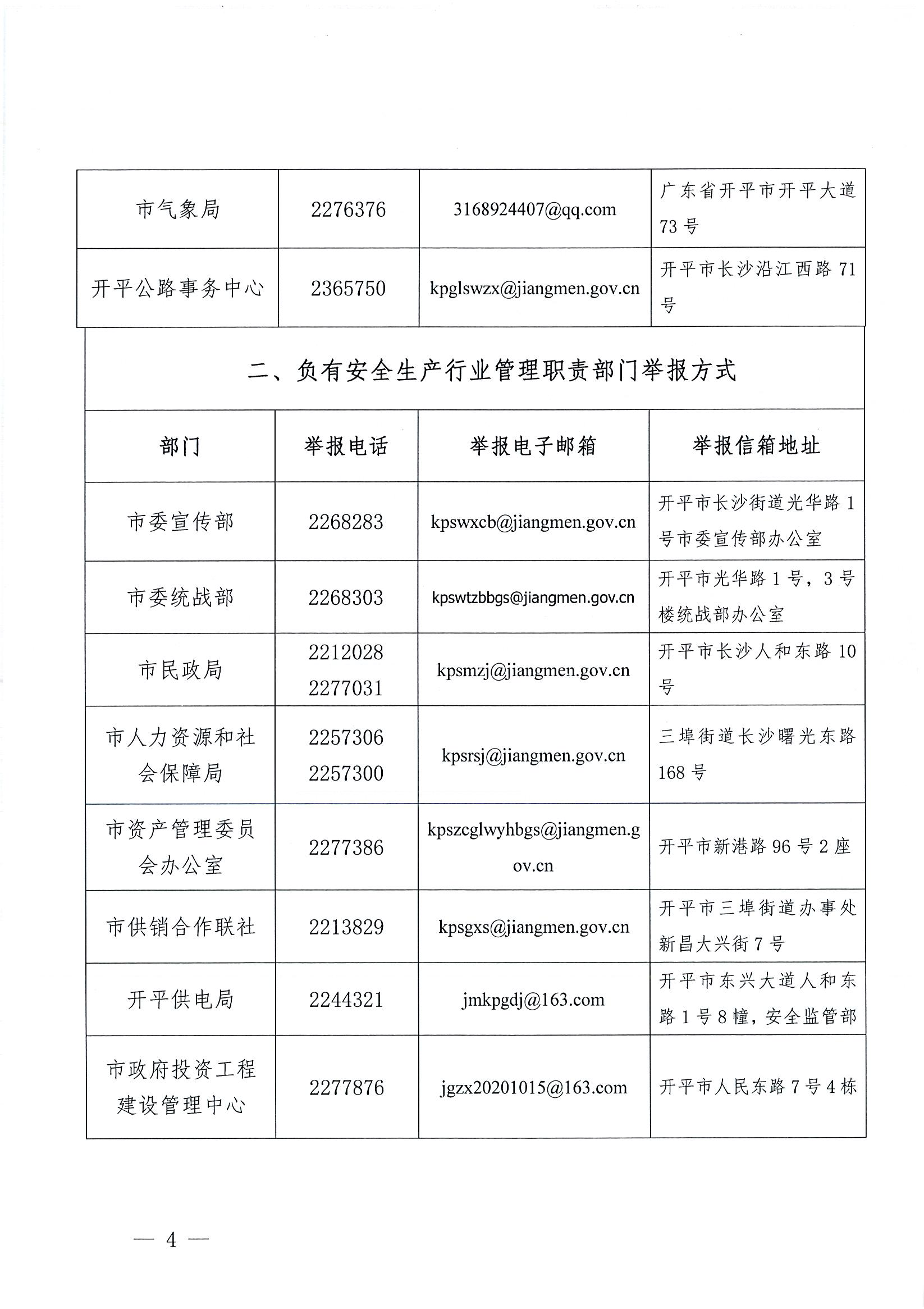 关于公布安全生产违法行为和安全生产事故举报途径的公告