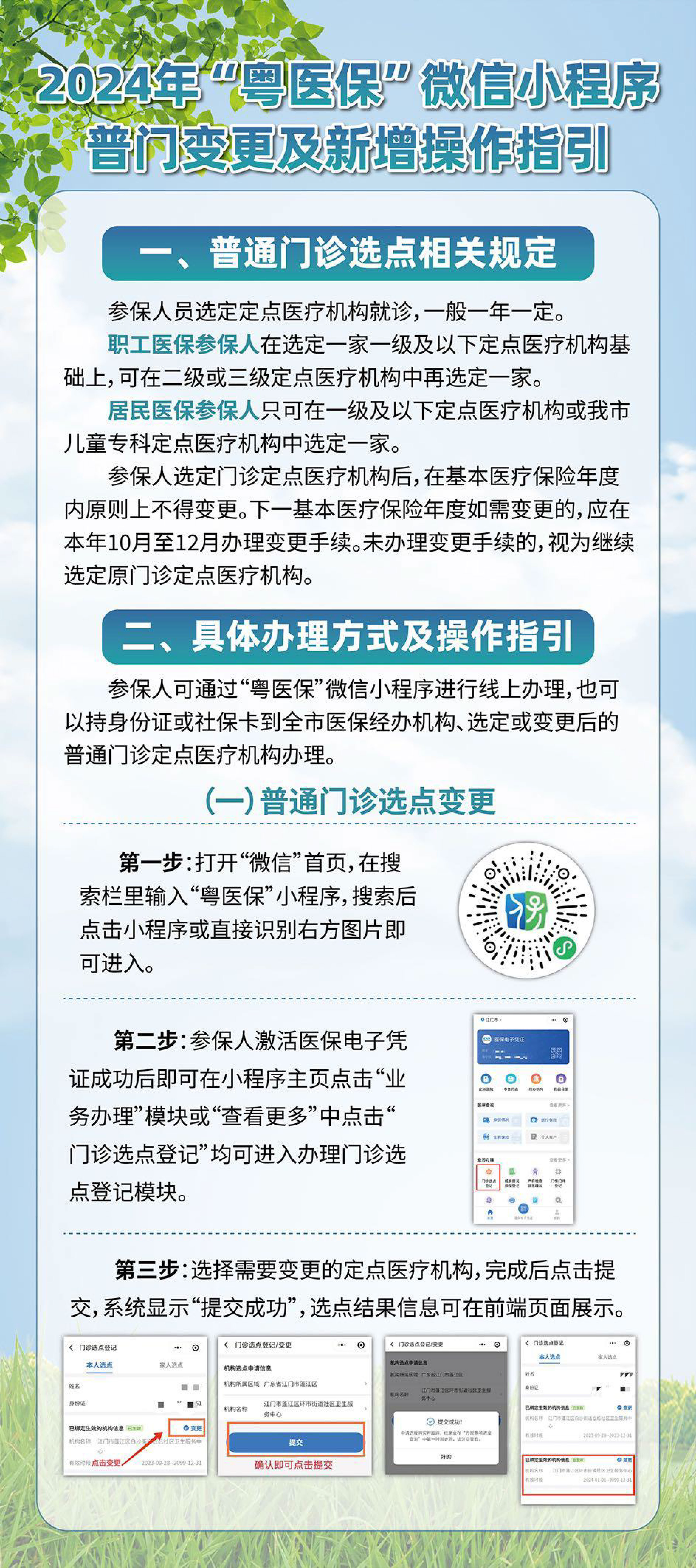 在此提醒,原将开平沙冈张立群医院选为2024年普通门诊定点医院的参保人,请从2024年5月15日零时起,重新选定我市任意一家一级及以下的定点医疗机构作为基层普通门诊选点医院。