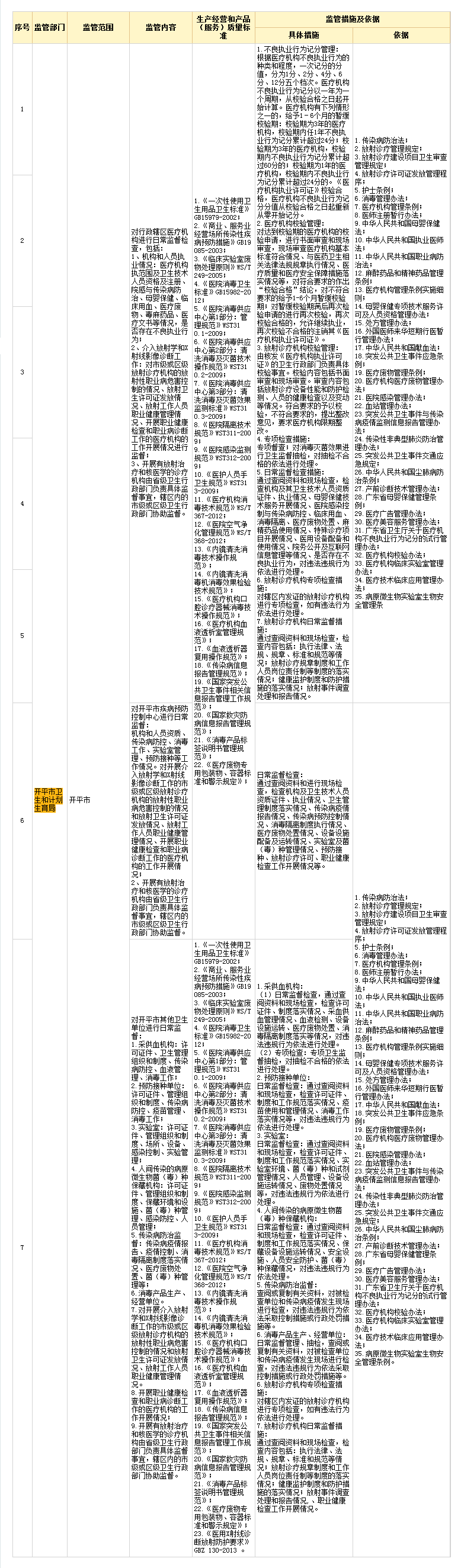 海棠直播 卫生和计划生育局 监管清单
