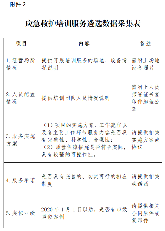 红十字会2023年应急救护培训服务遴选报名表 2.应急救护培训服务遴选数据采集表 广东省海棠直播