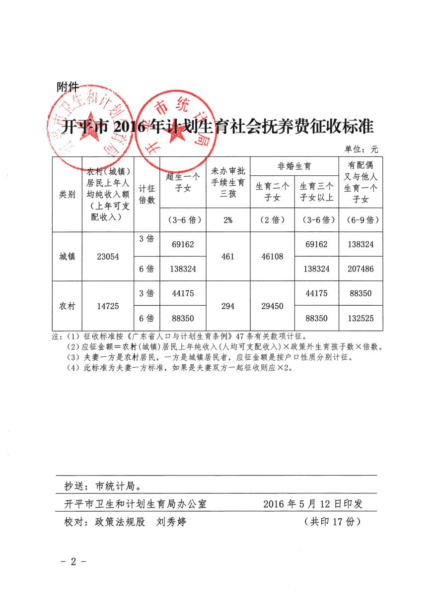 关于印发《海棠直播 2016年计划生育社会抚养费征收标准》的通知(开卫字[2016]178号)