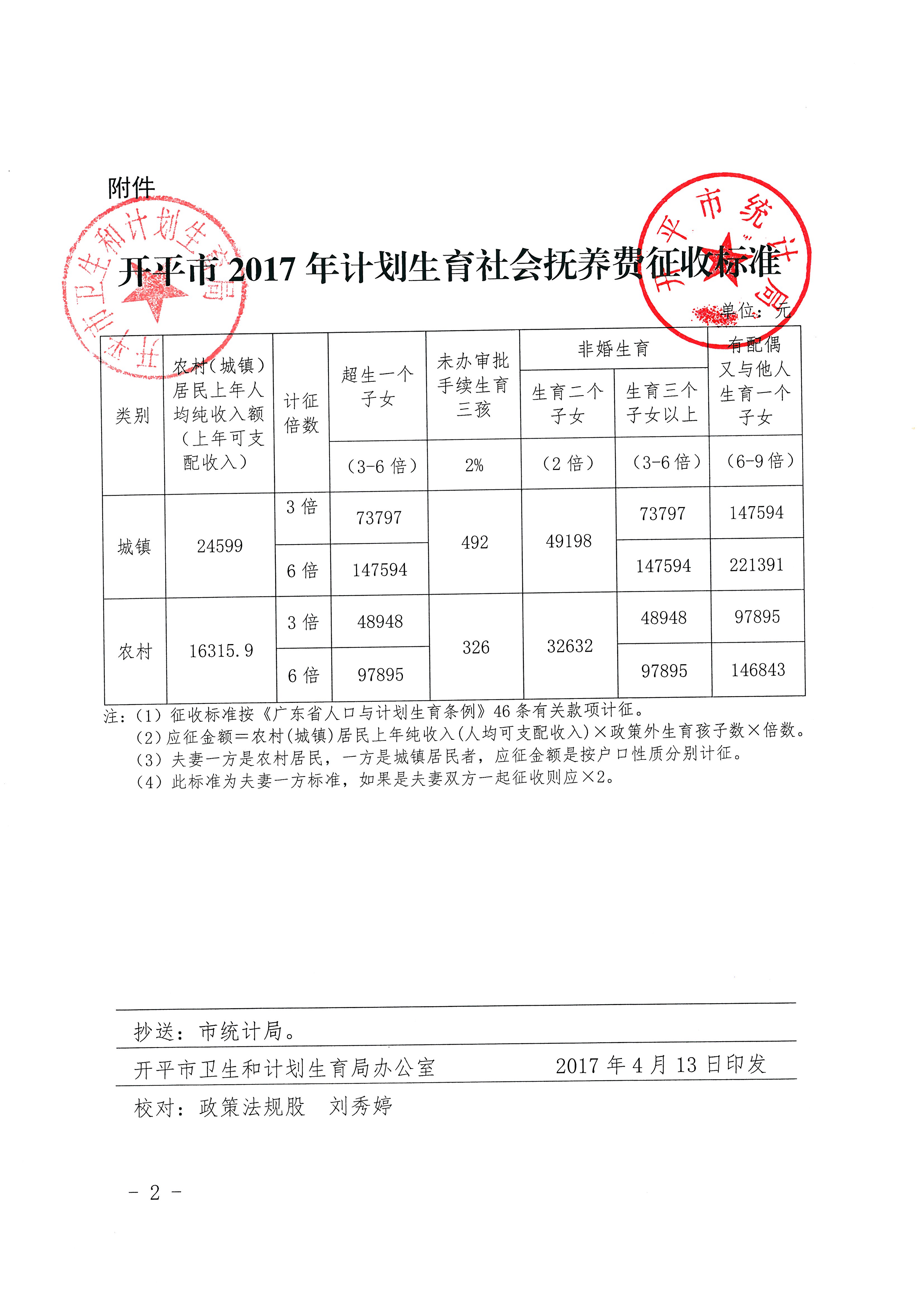 关于印发《海棠直播 2017年计划生育社会抚养费征收标准》的通知(开卫字[2017]185号)