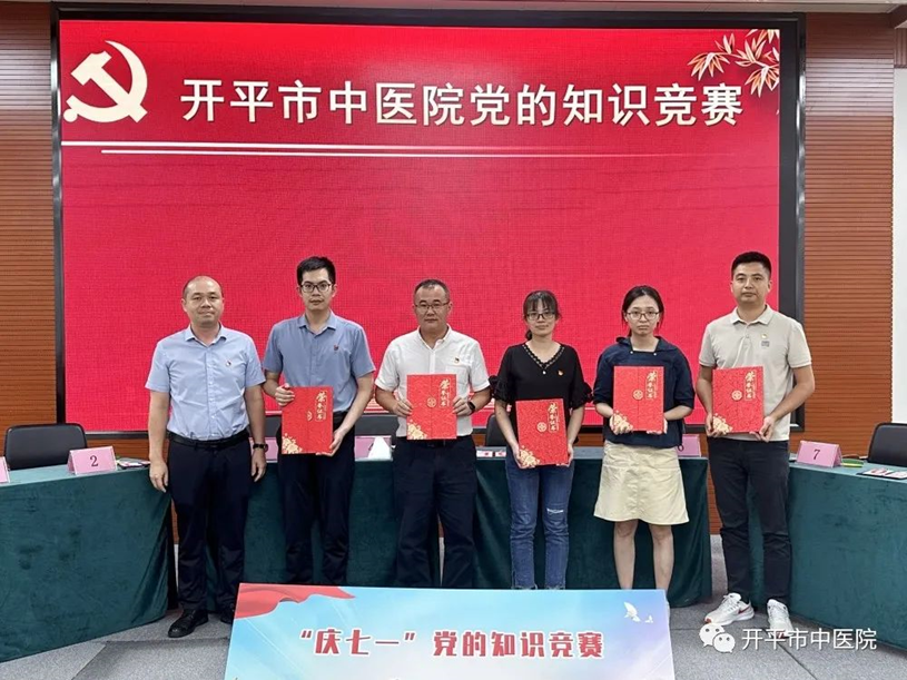 中医院党委举办庆“七一”党的知识竞赛,14位选手及7个团队登台竞技,一展风采。 竞赛活动在总院多功能厅进行,市卫健局党组成员苏黎明出席活动,医院党政领导班子成员及百余名党员参加。 竞赛设置个人赛和团队赛,分必答题、抢答题两种类型,题目包括党的基本知识、党的二十大知识、党史知识、听红歌猜歌名、看图说史等,内容丰富,知识覆盖面较广。 参赛团队精神饱满,默契配合。选手们沉着冷静,应答如流。 场上比分交替上升,扣人心弦。 党员们热情高涨,纷纷为各自支持的队伍打CALL,掌声、欢呼声此起彼伏,整个比赛过程精彩纷呈,气氛严肃却不失活跃。 经过激烈角逐,方晓虹、周露、陈琰妃分别获得个人赛一等奖、二等奖、三等奖;陈志尧、邓素玲、梁思敏、刘伟健、罗裕津等5人获优胜奖。团队赛,第七党支部获得一等奖,第一党支部获得二等奖,第六党支部获得三等奖。 颁奖仪式 市卫健局党组成员苏黎明及医院党政领导班子成员为获奖个人和团队颁奖。 个人赛 ▲党委副书记、院长胡敏超为个人赛一等奖获得者颁奖 ▲党委委员、副院长陈缘超为个人赛二等奖获得者颁奖 ▲副院长余健成为个人赛三等奖获得者颁奖 ▲党委委员、党政办公室主任周建洲为个人赛优胜奖获得者颁奖 团队赛 ▲市卫健局党组成员苏黎明为团队赛一等奖颁奖 ▲党委委员、副院长劳梅新为团队赛二等奖颁奖 ▲党委委员、党政办公室主任周建洲为团队赛三等奖颁奖 “你们展示了扎实的知识功底和出色的临场反应能力,祝贺你们。”医院党委副书记、院长胡敏超讲话,对获奖个人和团队表示热烈的祝贺,他指出,竞赛活动既检验了党员干部的知识储备,又增强了团队的凝聚力和战斗力,希望全体党员干部不断提高政治站位,凝聚智慧和力量,以党建引领医院高质量发展,为百姓健康护航。
