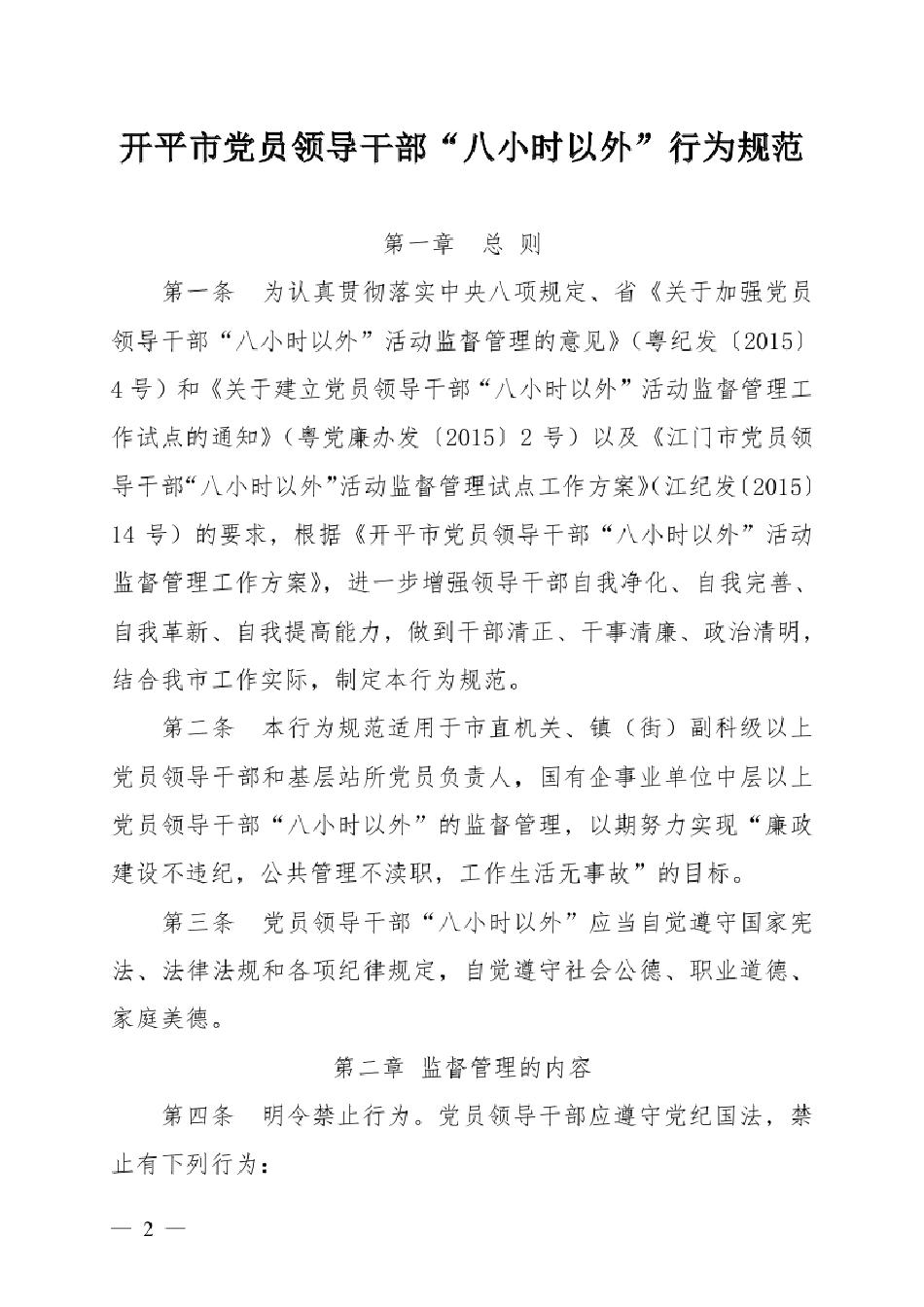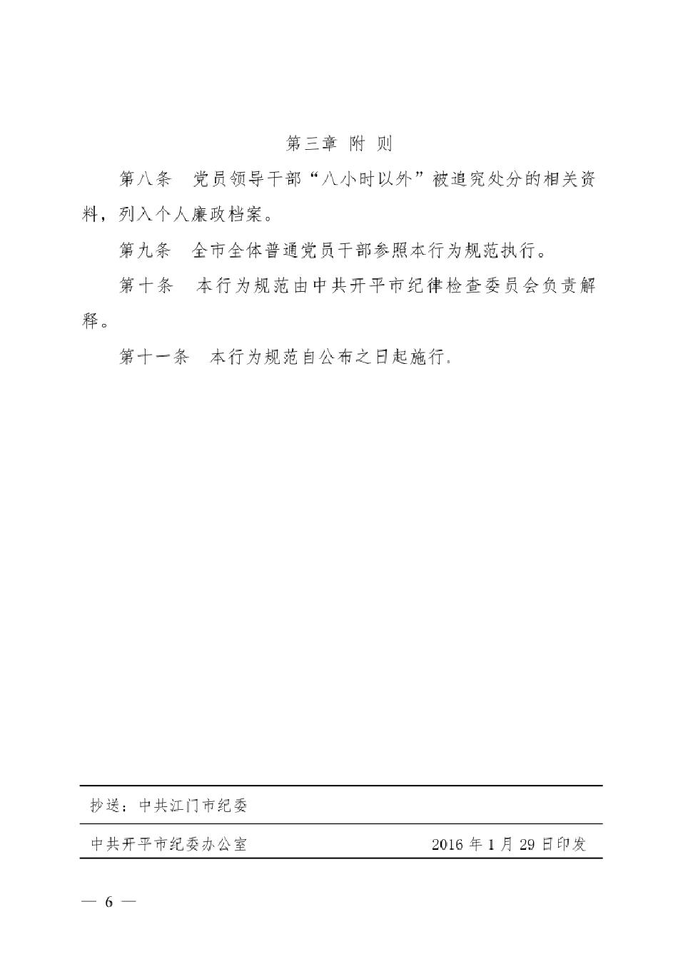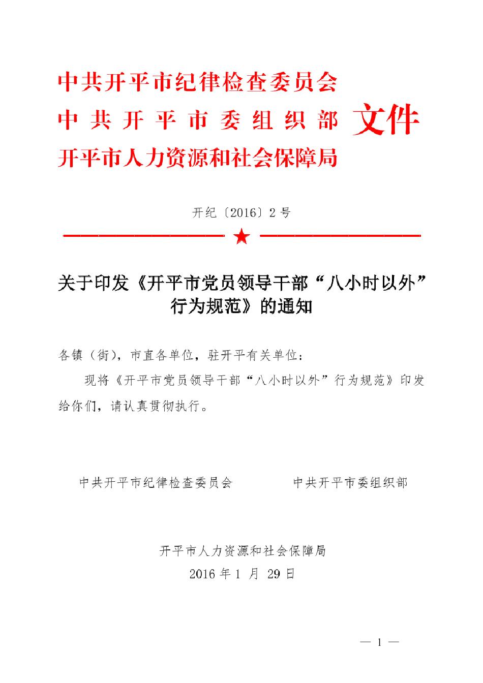 【工作制度】开纪〔2016〕2号 关于印发《海棠直播 党员领导干部“八小时以外”行为规范》的通知
