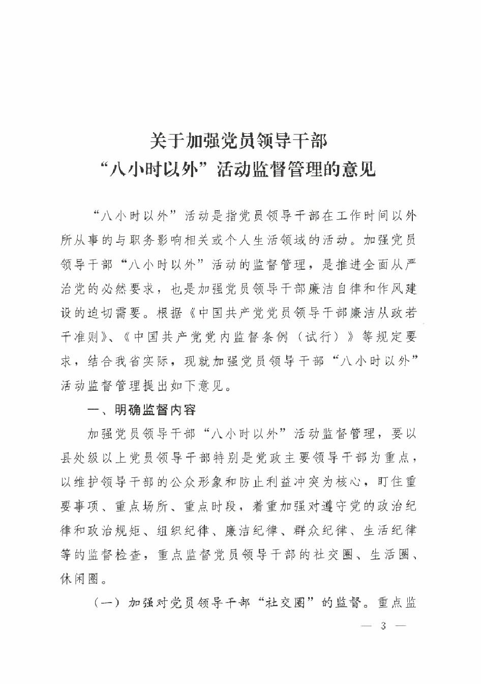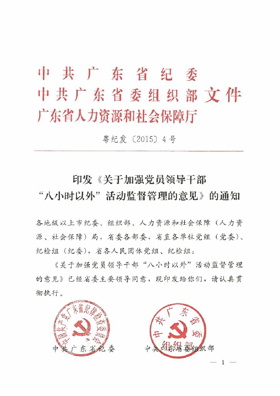 【工作文件】粤纪发〔2015〕4号_印发《关于加强党员领导干部“八小时以外”活动监督管理的意见》的通知