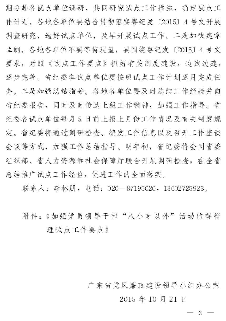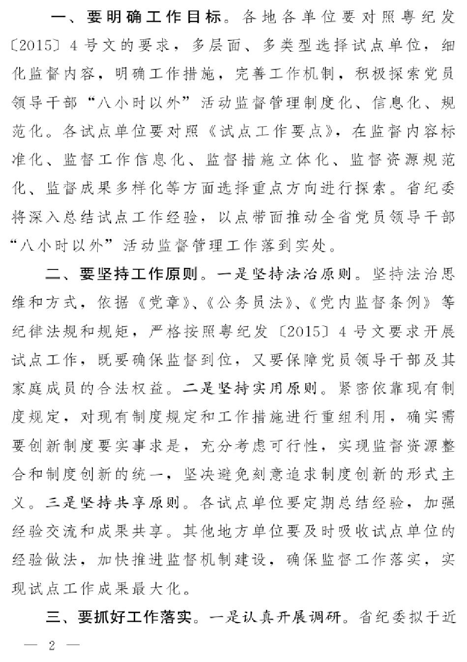【工作文件】关于建立八小时以外监督试点工作的通知(粤党廉办发[2015]2号)