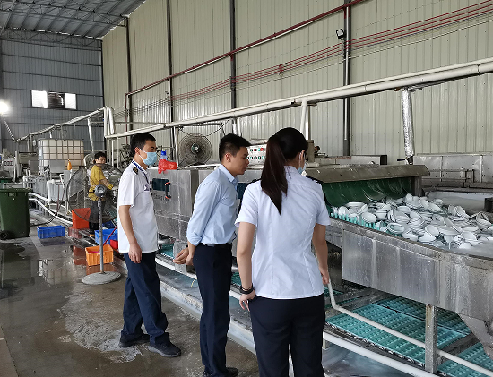 卫生监督所 为确保江门市创建“国家食品安全示范城市”工作有序推进,如期完成创建任务,近日,市卫生监督所按照自身职能和上级工作要求,对辖区内餐饮具集中消毒服务单位开展监督检查。 卫生监督员重点对餐饮具集中消毒单位的环境卫生、洗消流程、生产用水、洗涤剂、包装标识、餐饮具出厂前检验等情况进行了监督检查。检查情况总体良好,对检查中发现的问题,卫生监督员当场下达了卫生监督意见书,责令当事人立即改正。 下一步,市卫生监督所将继续加强对餐饮具集中消毒服务单位的监管,督促餐饮具集中消毒服务单位全面落实餐具清洗消毒各项卫生要求,为我市高质量完成创建任务作出应有贡献。