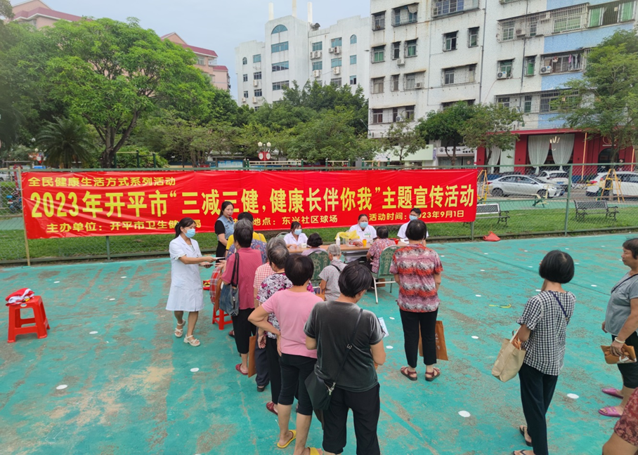 卫生健康局联合长沙社区卫生服务中心,在长沙街道东兴社区球场开展“三减三健,健康长伴你我”主题宣传活动,吸引了社区周边居民参与活动。 活动现场,工作人员为居民们发放“健康素养66条”宣传本、“减盐”勺子,医护人员为居民们提供了测量测试心率、血压、血糖、体重等免费服务。针对社区中易患高血压、高血糖、高血脂、糖尿病、肥胖症等疾病的老年居民,医护人员也在进一步询问并了解他们的生活习惯和身体状况后,做出针对性诊断和相关建议,并对居民们进行“三减三健”健康生活方式的宣传讲解,“三减三健”即减盐、减油、减糖以及健康口腔、健康体重、健康骨骼。 东兴社区此次宣传活动提高了辖区居民自我健康维护的意识,引导居民改善自己的饮食结构以及生活状态,让居民意识到每个人都是自己健康第一责任人,提升居民的生活幸福感和认同感,共同建设健康和谐的幸福社区。