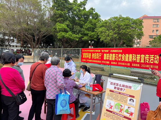 为全面贯彻落实党的二十大精神和党中央、国务院关于实施扩大内需战略的决策部署,深入实施“港澳融合”“侨都赋能”工程,擦亮“侨都咖啡”特色消费品牌,营造新春、元宵佳节良好消费氛围,促进消费提升。2月19日,市卫生健康局联合长沙社区卫生服务中心在东兴社区小公园开展“啡常科普 你我同行”咖啡健康与饮食健康科普宣传活动。 咖啡有1000多年的饮用历史,是世界上流行范围最为广泛的饮料之一。对于咖啡的功效以及是否健康的争议,似乎一直没有停止过。活动现场设有咖啡科普展板、健康体检、健康咨询、派发养生之道小册子、健康素养66条等。同时,通过七方面进行科普宣传:一是咖啡是健康饮品;二是每天可以喝多少杯咖啡;三是关于咖啡影响健康的一些因素;四是喝咖啡导致骨质疏松;五是速溶咖啡是否可以喝;六是什么时候不能喝咖啡;七是哪些人慎喝咖啡等多层面宣传。 通过现场宣传,从营养健康层面进行科普解读,除了咖啡因,咖啡还含有维生素C、维生素E、抗氧化剂等营养物质。适量饮用咖啡可以对身体有益,但过量摄入可能会对健康产生负面影响。因此,应该根据自己的身体状况和饮用量来决定是否饮用咖啡。咖啡是一种健康的饮料,但应该适量饮用,并选择低咖啡因、营养丰富的咖啡。喝好咖啡,让健康更美好。让群众对如何喝咖啡得到进一步了解,消除群众对喝咖啡的误解。