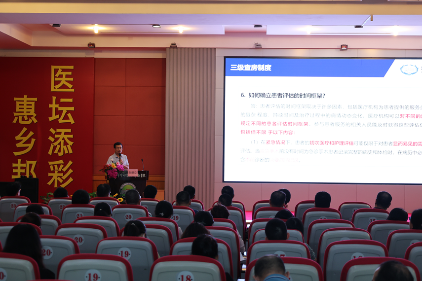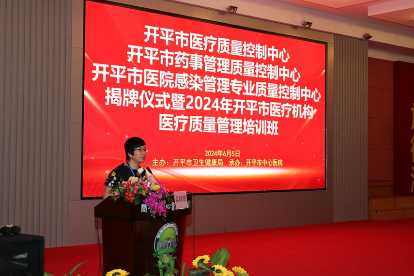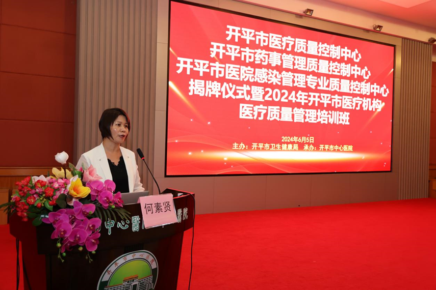 中心医院院长吴焯鹏、副院长吴妙琼以及全市各医疗机构等领导出席了本次活动。 会上,吴妙琼对我市医疗质量管理工作进行了汇报。 何素贤针对我市医疗系统的质量控制工作强调三点意见:一要加强组织领导,不断强化质量责任意识、安全意识;二要加强业务培训。抓住本次医疗质量管理培训班的机会,强化自身专业素养;三要开展定期督查。三大质量控制中心要加强对全市医疗机构质量控制工作的技术支持、业务指导及日常监督,定期召开质控培训及质控督查,推进我市医疗质量、药事质量及院感管理工作日渐规范化、标准化。 同时,参会嘉宾共同为海棠直播