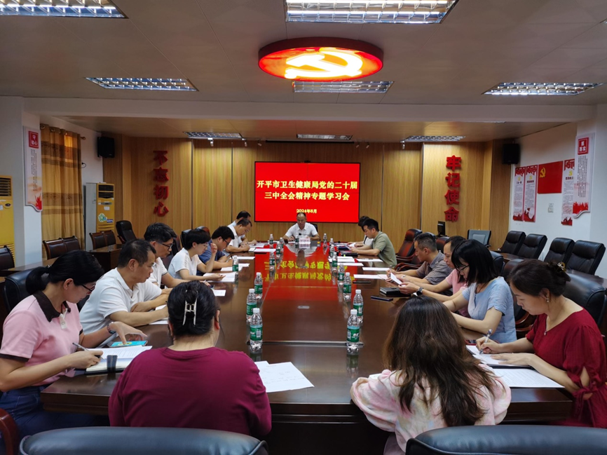 卫生健康局召开党的二十届三中全会精神专题学习会,传达学习党的二十届三中全会精神。市卫生健康局党组书记罗健华主持会议并讲话。 会议指出,党的二十届三中全会是在以中国式现代化全面推进强国建设、民族复兴伟业的关键时期召开的一次具有里程碑意义的重要会议。全会审议通过的《中共中央关于进一步全面深化改革、推进中国式现代化的决定》,紧紧围绕中国式现代化这个主题,擘画了进一步全面深化改革的总体部署,既是党的十八届三中全会以来全面深化改革的实践续篇,也是新征程推进中国式现代化的时代新篇,是我们党历史上又一份重要纲领性文献。 会议强调,要把学习贯彻好全会精神作为当前和今后一个时期的重要政治任务,聚焦学深悟透,迅速开展学习宣传。通过党组理论学习中心组学习、支部“三会一课”、主题党日、专题辅导讲座等多种方式,把学习宣传贯彻党的二十届三中全会精神与深入学习贯彻习近平总书记关于卫生健康和深化医改重要论述结合起来,一体学习领会,整体贯彻落实,引导全体党员干部、职工在推动新时代卫生健康事业高质量发展上统一思想、凝聚共识、坚定信心、增强斗志,展现新气象、实现新作为。要聚焦主责主业,推动医改走深走实。推进三医协同发展和治理,促进医防协同、医防融合,巩固扩大医改惠民成果,为百姓提供全方位、全周期健康服务。要深化以公益性为导向的公立医院改革,推动构建以治病为中心转向以人民健康为中心的医疗卫生服务体系,推动资源均衡布局与下沉,强化基层医疗卫生服务体系能力建设,引导规范民营医院健康发展,提升区域医疗服务综合实力。要扎实开展紧密型县域医共体建设,落实分级诊疗制度,构建有序就医新格局。要提升中医药服务能力,推动中医药融入医改。要健全人口发展支持和服务体系,聚焦全生命周期,多渠道扩充普惠育幼服务供给,提高妇幼和老年健康服务水平,积极构建生育友好型社会。要聚焦目标任务,统筹抓好当前工作。深化党纪学习教育,深入推进全面从严治党。持续做好医疗卫生应急工作,落实卫健行业安全生产责任。加强平安医院建设,保障正常医疗秩序。加快推进下半年重点工作,对标对表、查缺补漏,确保完成全年目标任务。