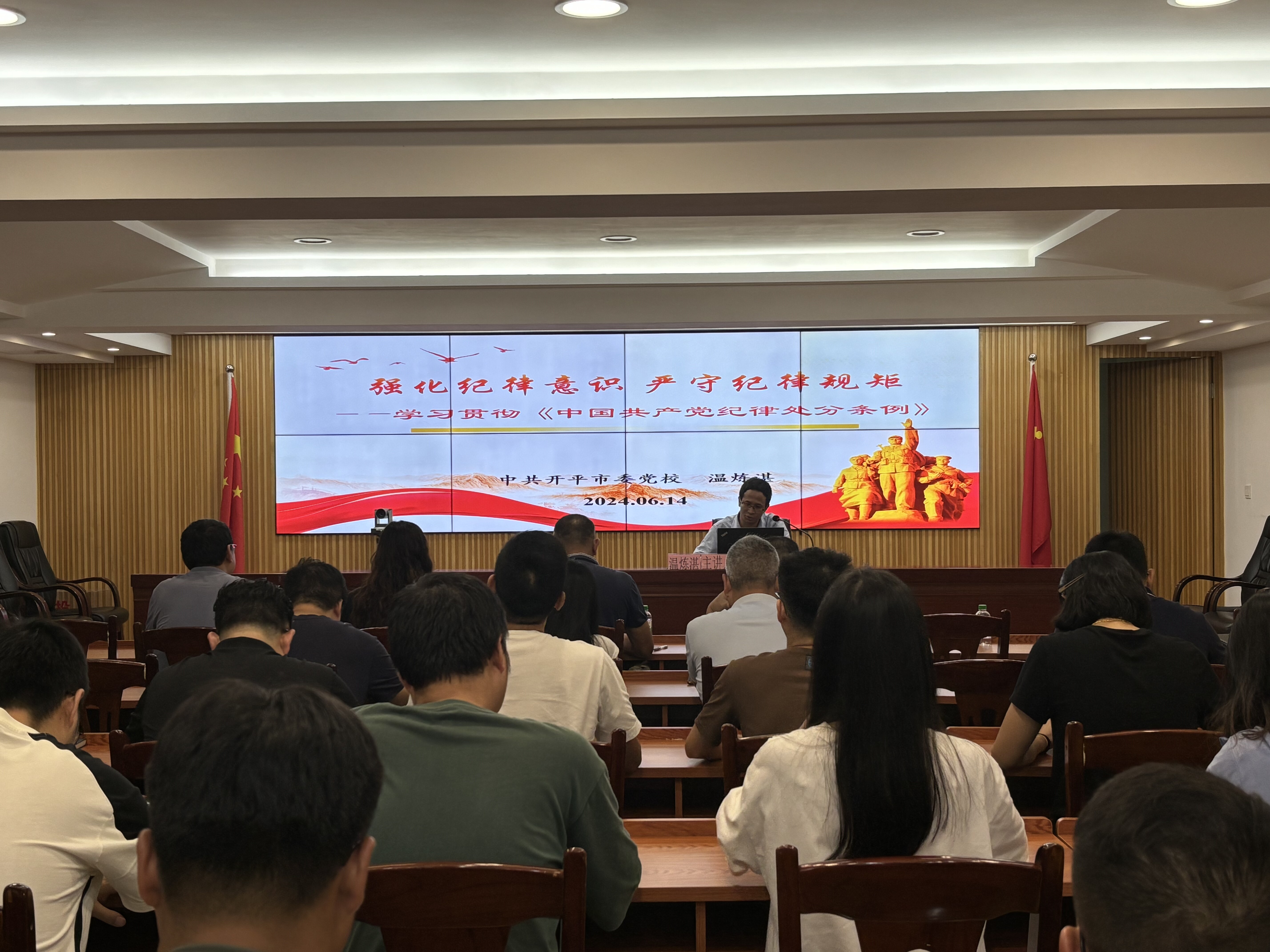 614日,市应急管理局召开党纪学习教育宣讲活动,邀请市委党校温炼湛老师作党纪学习教育主题宣讲,局全体党员干部、职工、大队队员共50人参加此次活动。