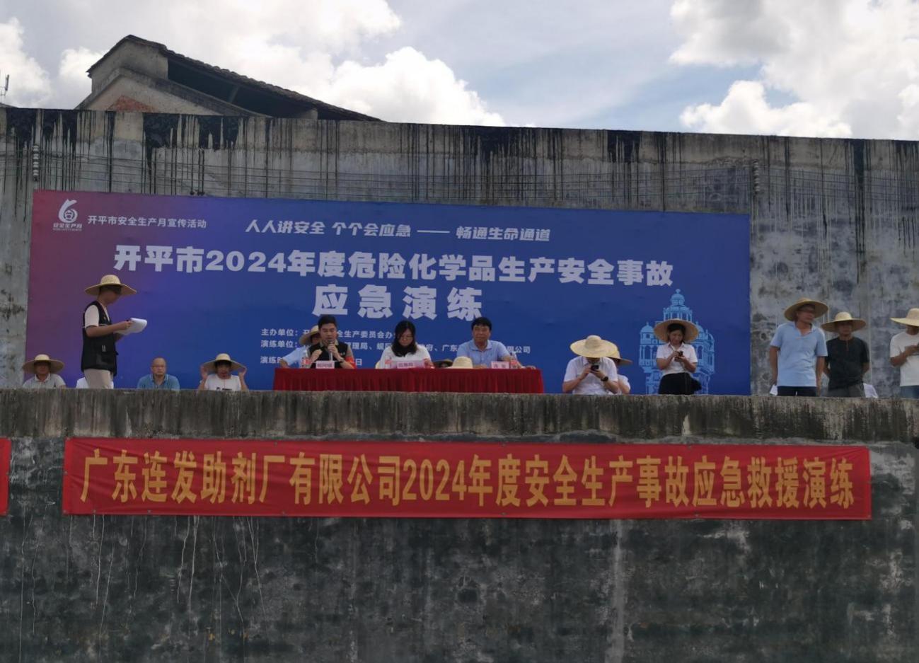 2024年度危险化学品安全生产事故应急救援演练。 市应急管理局党委委员、副局长何晓敏,蚬冈镇党委委员李鹏辉,危化股及蚬冈镇应急办负责同志,广东连发助剂厂有限公司主要负责人及全体员工参演,海棠直播