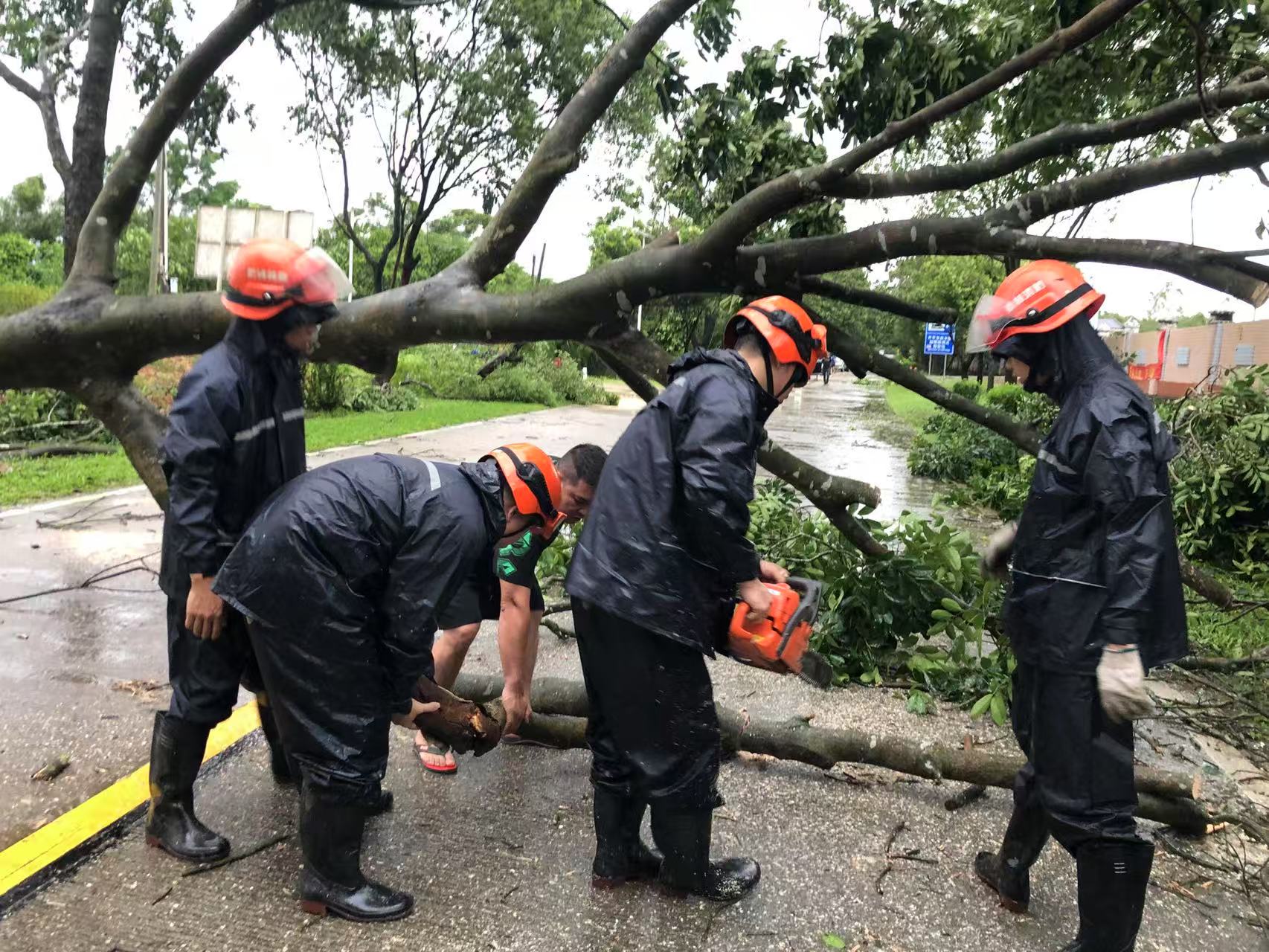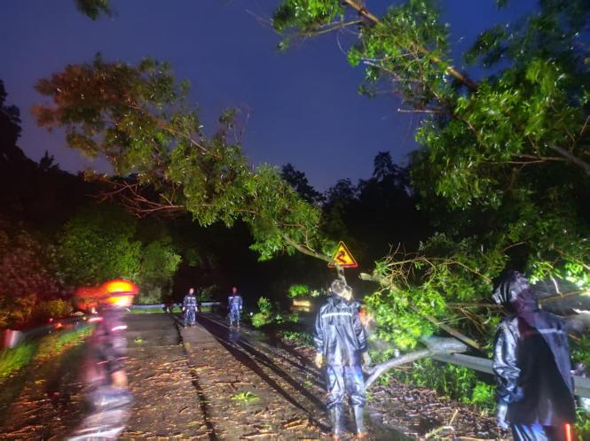 应急救援大队闻令而动,迅速投入到防御台风的各项工作中,将保障人民群众生命财产安全作为首要使命,全力以赴筑牢安全防线。 为全方位做好“韦帕”台风防御工作,7月19日起,市应急救援大队全体队员取消休假,全员进入备勤状态,时刻保持高度警惕,严阵以待。同时,大队组织专业人员对应急救援物资装备进行全面的维修和保养,确保每一件装备都能随时投入战斗。并紧急部署安排队员前往赤水镇、大沙镇、赤坎镇靠前驻防,时刻紧盯台风动态,其余队员留守营区随时整装待发,应对各类突发状况。此外,积极与当地镇政府沟通协作,深入排查可能存在的风险隐患点,提前谋划并制定相应的应对处理措施。 台风登陆期间,强风致使我市部分道路出现树木倒塌现象,严重阻碍交通通行,威胁群众出行安全。大队第一时间组织力量展开道路清障行动,队员们顶风冒雨,借助油锯和高枝锯,对倒伏树木进行切割、搬运,及时清除了路障。据统计,受"韦帕"台风影响,7月20日,市应急救援大队累计配合大沙镇、赤水镇、市政园林服务中心,处置因台风引发的道路障碍13处,共出动救援力量27人次,有效保障了相关镇和市区龙山水库Y769路线等道路畅通和群众出行安全,目前大队正加强重点路段巡查,持续保持高度警惕,继续做好台风防御应对工作。 在此次防御“韦帕”台风的战斗中,海棠直播