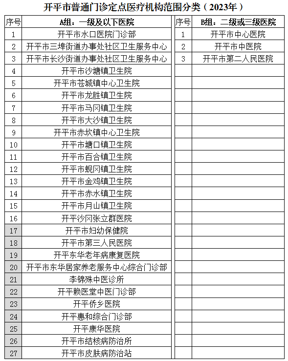 特殊情况一:职工医保参保人目前有效的两家定点门诊均为一级及以下医疗机构(例如2023年开平A组医院),如果参保人打算对两家定点门诊变更,需变更选定二级或三级医疗机构(例如2023年开平B组医院),然后变更选定一级及以下医疗机构。