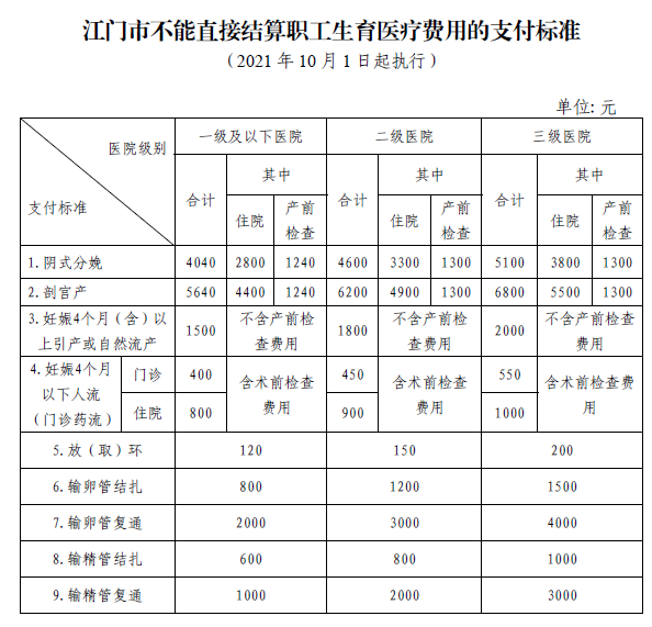未办理产前检查就医确认手续、未按规定办理变更产前检查定点医疗机构或因参保职工个人原因造成生育医疗费用不能直接结算的,可以向参保地医疗保障经办机构申请零星报销,具体支付标准如下表。