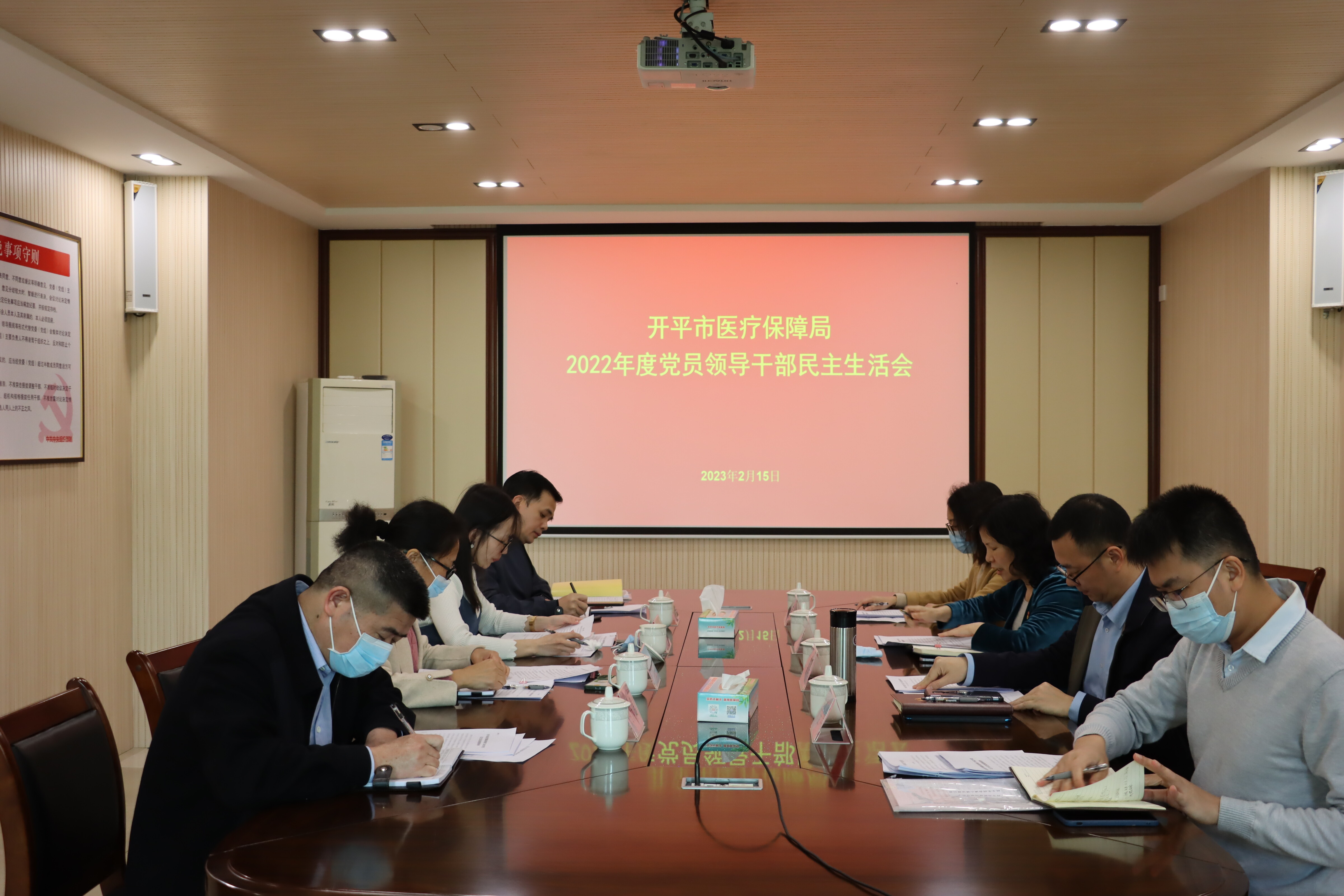 2月15日下午,市医保局党组召开2022年度党员领导干部民主生活会。局党组书记庄冬梅主持会议,局全体党组成员参加会议,局长梁荣华列席会议。市委第五督导组组长黄敏茵到会指导。