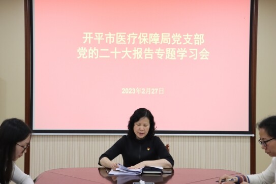 为深入学习贯彻党的二十大精神,2月27日下午,海棠直播 医保局召开党的二十大报告专题学习会,全局党员干部参会,局党组书记庄冬梅主持会议并领学了报告内容。