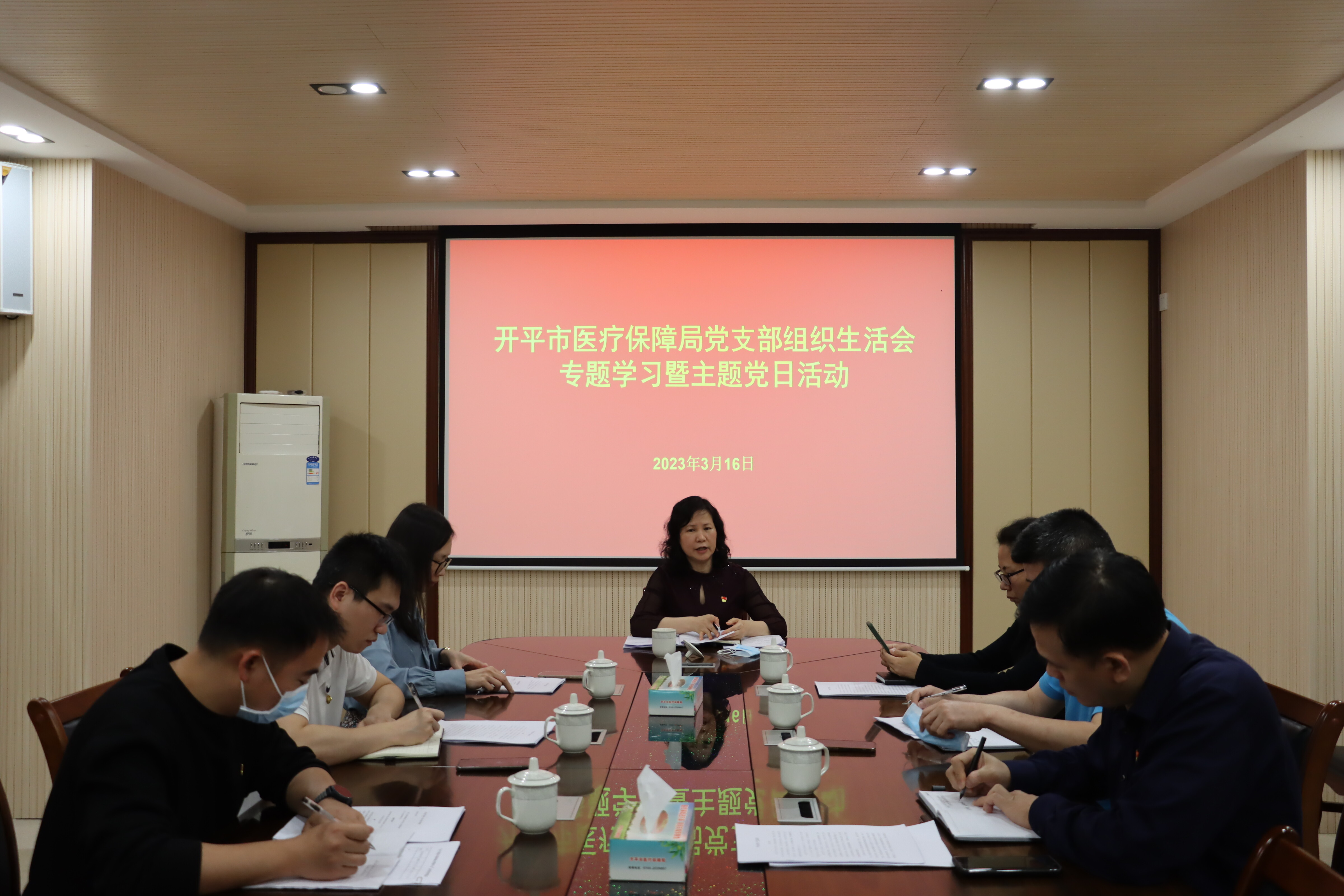 为认真学习领会党的二十大精神,进一步增强广大党员的党性观念,激发党员的先进性,2023年3月16日下午,海棠直播 医保局组织全体党员开展学习党章主题党日活动,会议由局党组书记庄冬梅主持。
