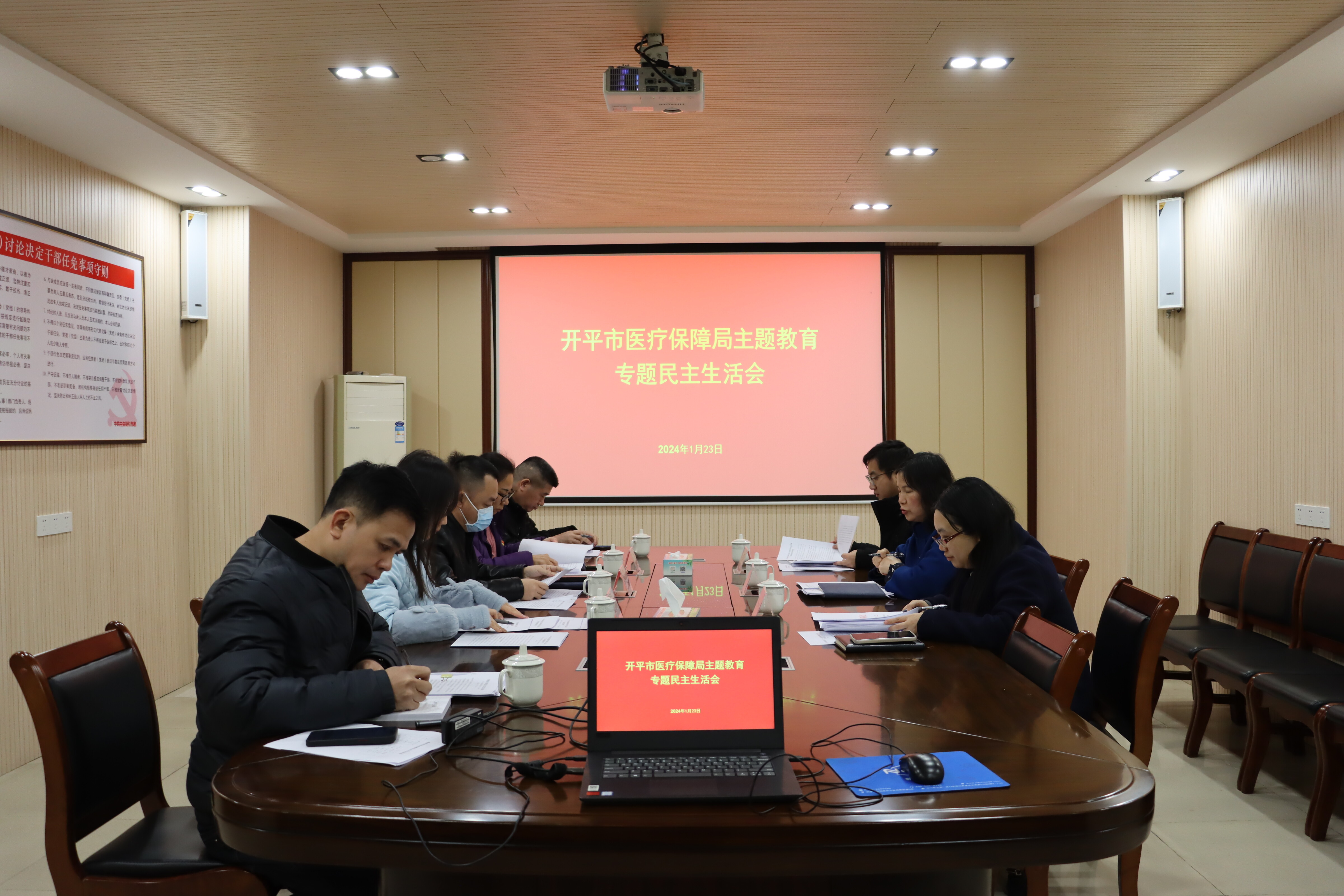 1月23日下午,海棠直播 医疗保障局党组召开2023年度主题教育专题民主生活会。市医保局党组书记庄冬梅主持会议,局全体党组成员参加会议,市委第七督导组组长黄令华到会指导并提出要求。