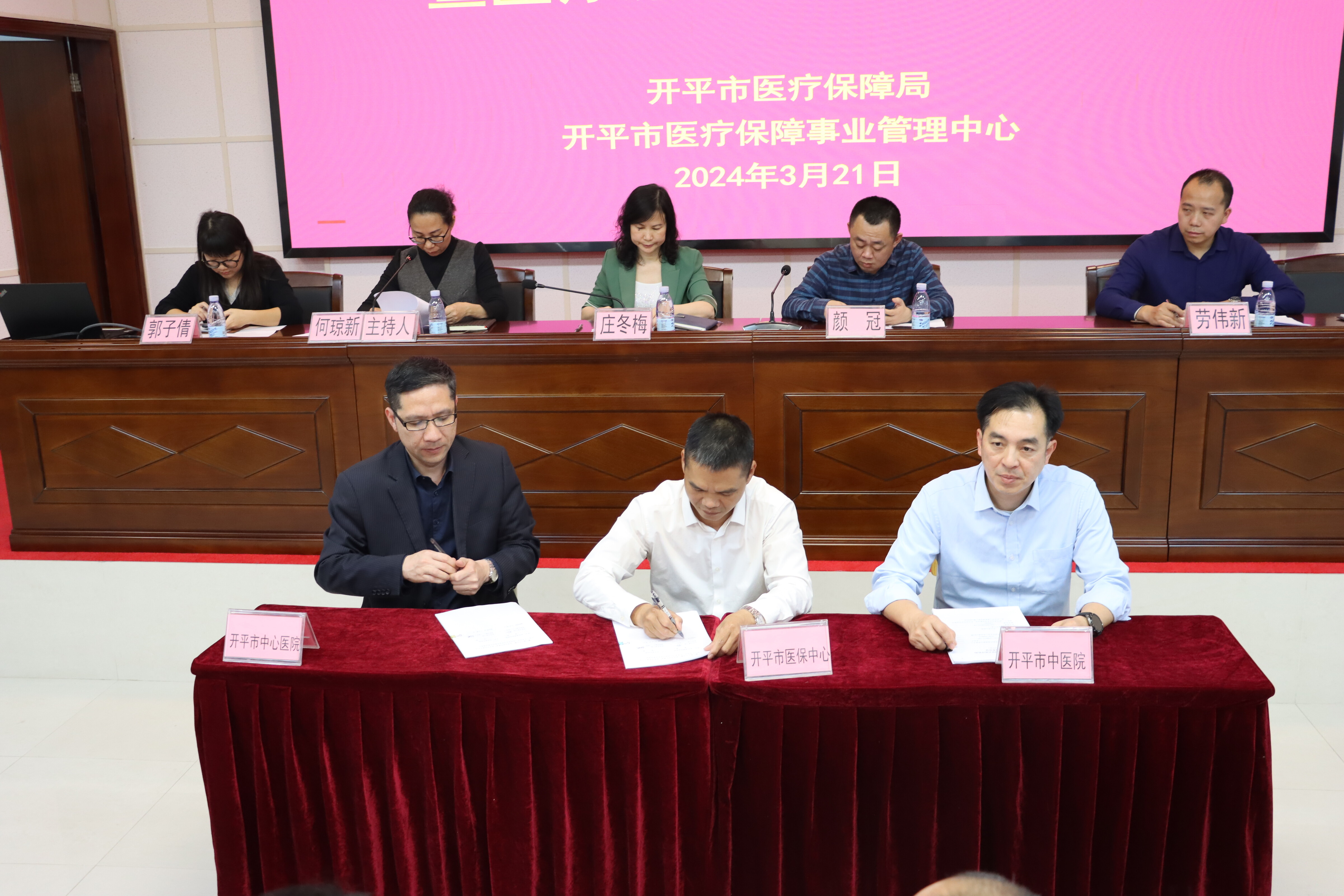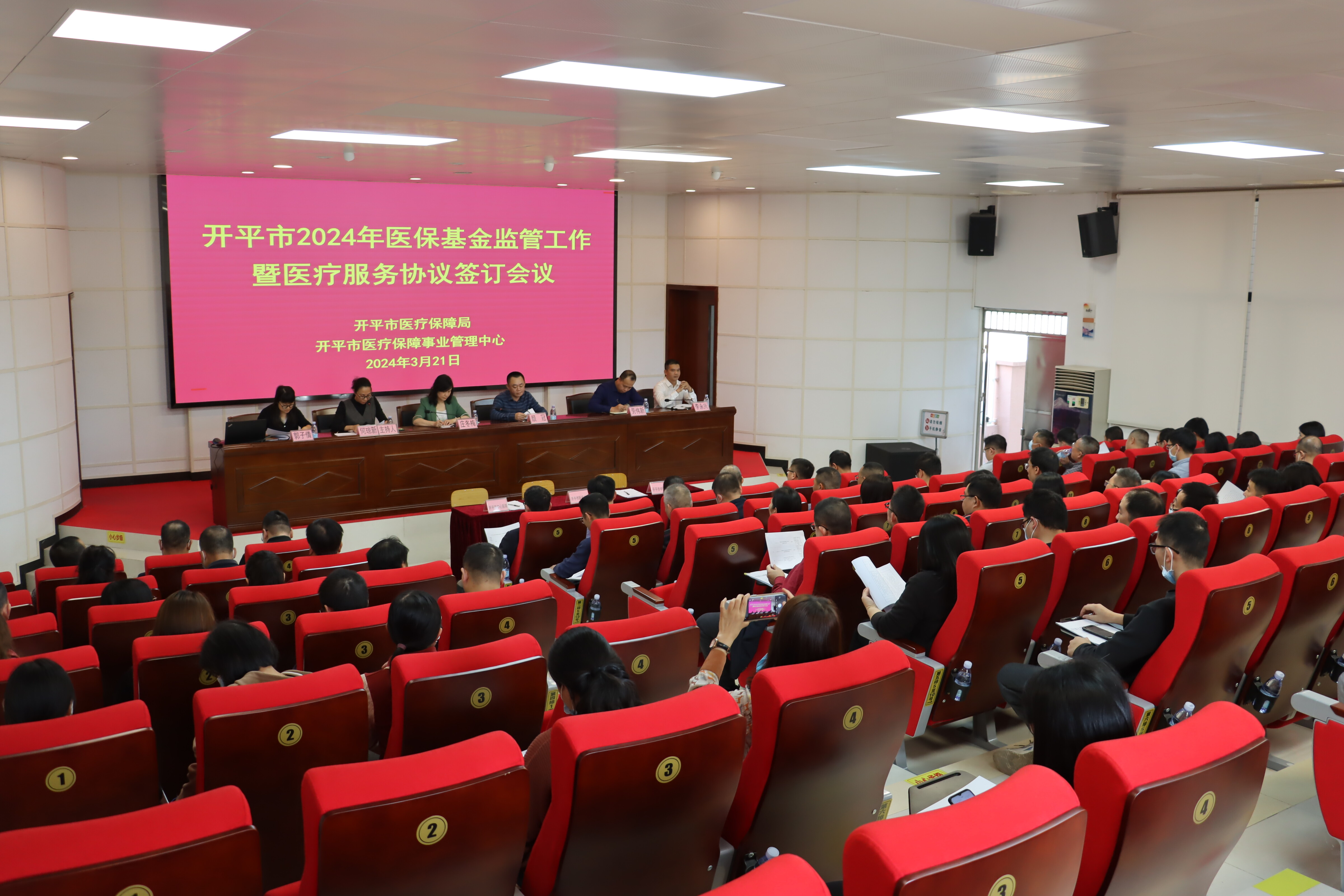 为进一步规范定点医疗机构医疗服务行为,保障参保人员合法权益,维护我市医保基金安全运行,3月21日下午,海棠直播 医疗保障局组织召开2024年医保基金监管工作暨医疗服务签订会议。市医保局领导班子成员、卫健局分管领导、各定点医疗机构有关领导及工作人员共90余人参加了会议。会议对我市2023年度医保基金监管情况进行总结,通报表扬2023年海棠直播 医保工作先进单位和个人,以及我市2023年度基本医疗保险和生育保险等级考评情况,并与中心医院、中医院法人现场签订《2024年定点医疗机构服务协议》。