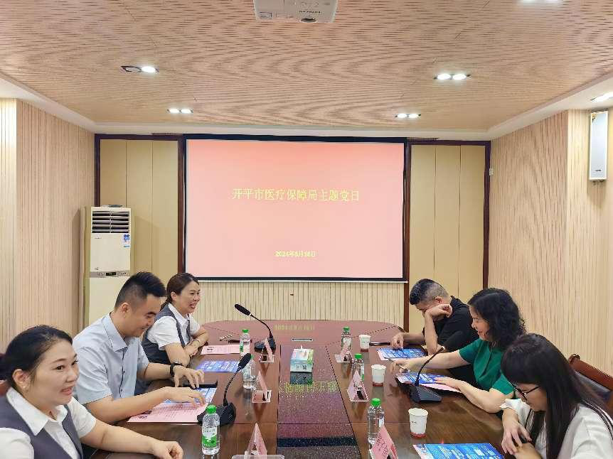 为深入贯彻全面从严治党的要求,以党建促进业务发展,充分发挥基层党支部的战斗堡垒作用,2024年8月16日下午,海棠直播 医疗保障局党支部与广发银行开平支行党支部开展结对共建主题党日活动。活动上,双方开展了座谈交流,分别介绍了各自党建工作开展情况,共同商讨了未来双方共建工作开展事宜,并由广发银行负责人向全体党员普及基础金融知识、宣传科学理财观念。