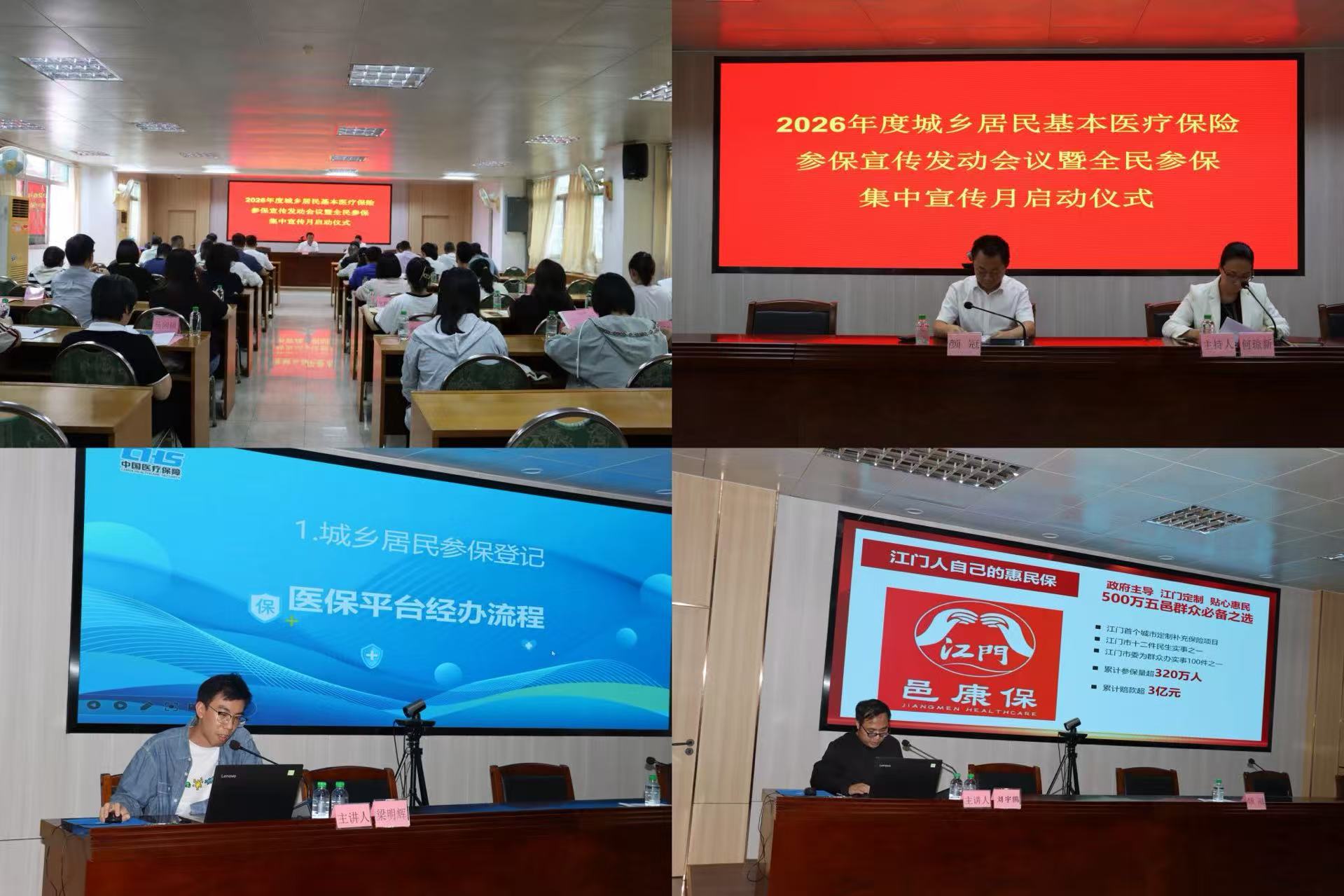 10月28日下午,海棠直播 医保局召开2026年度城乡居民基本医疗保险参保宣传发动会议暨全民参保集中宣传月启动仪式,各镇(街)、市有关部门分管领导和医保负责同志、“邑康保”有关负责人共40余人参加会议。