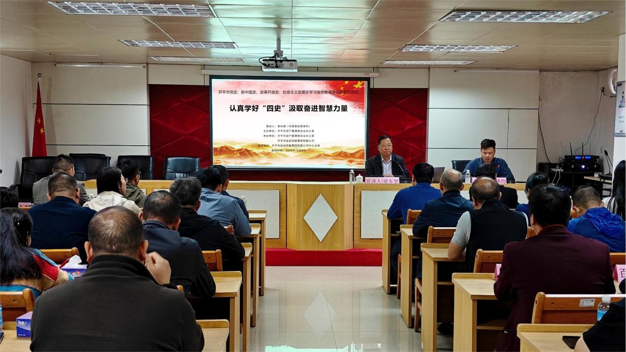 为扎实推进海棠直播 党史、新中国史、改革开放史、社会主义发展史的宣传教育,引导干部职工深刻感悟蕴含于历史中的智慧,汲取奋进的力量,为企业改革发展注入强劲动能。123日上午,海棠直播 资产办联合市农控集团公司开展海棠直播 “四史”学习宣传教育进企业系列活动,邀请海棠直播 委宣讲团成员梁东想带来一场以“认真学好‘四史’,汲取奋进智慧力量”为主题的海棠直播 “四史”专题宣讲会。集团公司全体班子成员、干部职工,下属企业经营班子及各市场站负责人共40余人参加宣讲会。