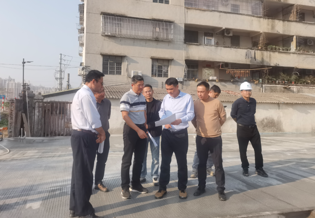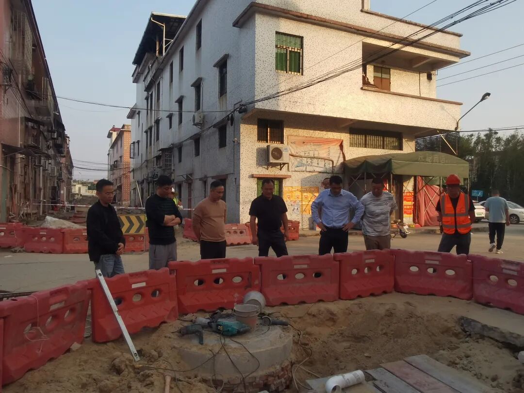 在蚬冈圩社区排水防涝改造工程现场,调研组与项目管理人员、施工人员面对面交流,细致梳理项目推进中的堵点难点,现场协调解决实际问题,为工程提速扫清障碍。