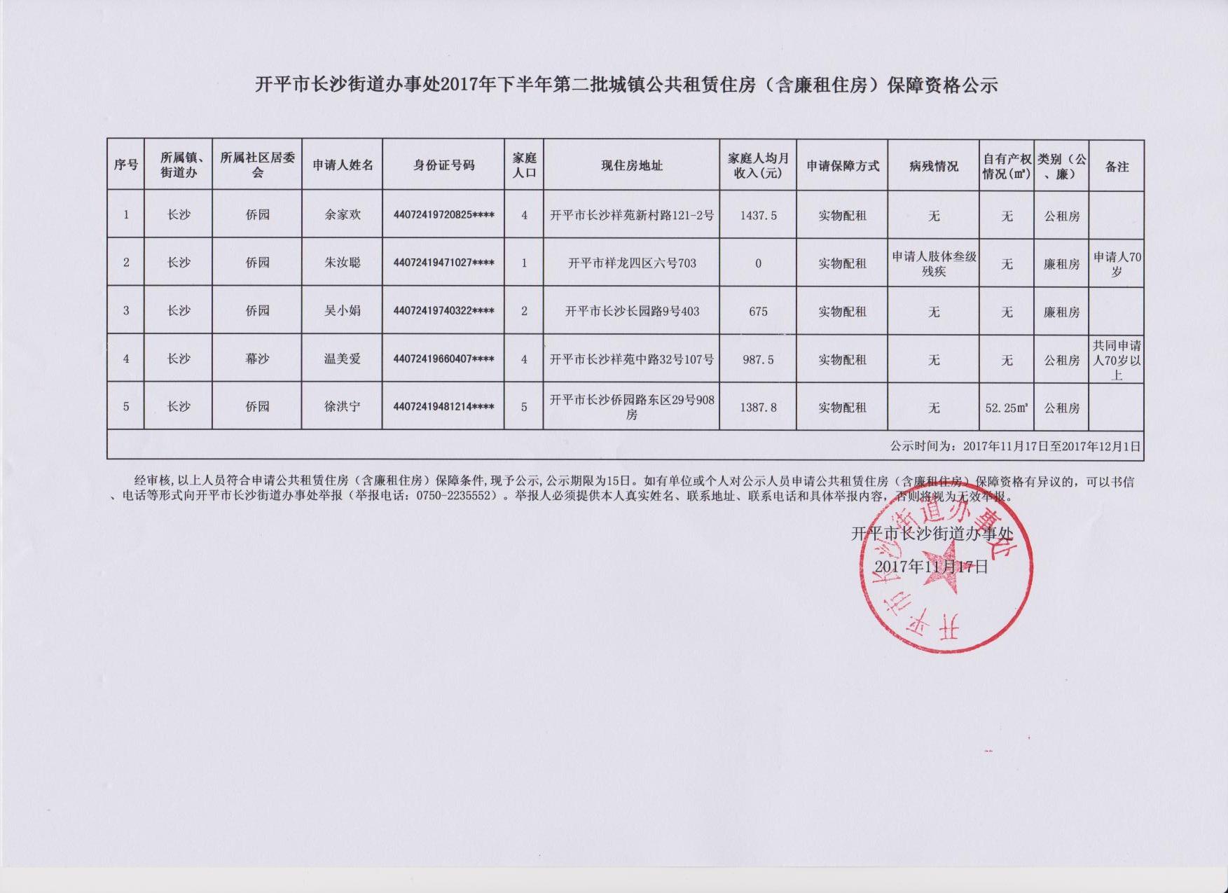 海棠直播 长沙街道办事处2017年下半年第二批城镇公共租赁住房(含廉租住房)保障资格公示_1515049475899.jpg