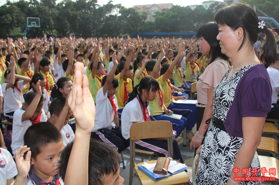 10月22日下午,港口小学邀请深圳道弘教育集团培训机构演讲团到校演讲。全校师生和学生家长4000余人聚会运动场,认真聆听了由李杰老师主讲的全国和谐校园巡回演讲会:“唤醒心中的巨人——孝顺父母、感恩老师、改变自己”。市教育局纪检组长甄新强以及三埠中心校相关负责人到场观摩了演讲。