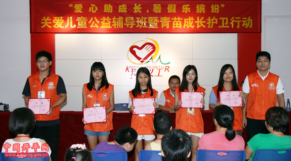 8月16日上午,团市委和市义工联举办的“爱心助成长,暑假乐缤纷”关爱儿童公益辅导班暨青苗成长护卫行动正式开班,近三十名展翅计划的大学生志愿者为我市37位小朋友准备了3天丰富多彩的课程和趣味活动。