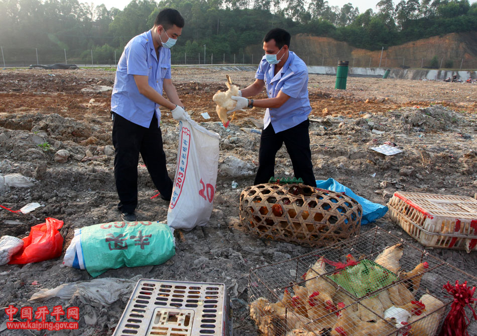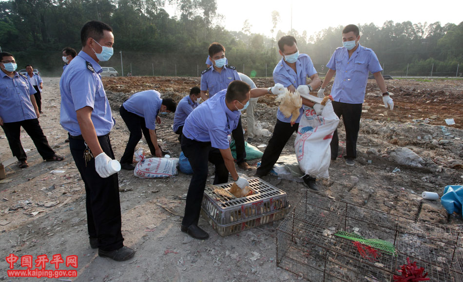为防控H7N9等高致病性禽流感,8月13日上午,由市府办牵头,开平工商局、市城监大队、公安局、市场物业公司、农业局、疾控中心、长沙街道办事处等部门单位组成联合执法队,整治幸福市场周边违法经营活禽行为,对人口密集区沿街宰杀、销售活禽行为予以整顿和取缔。