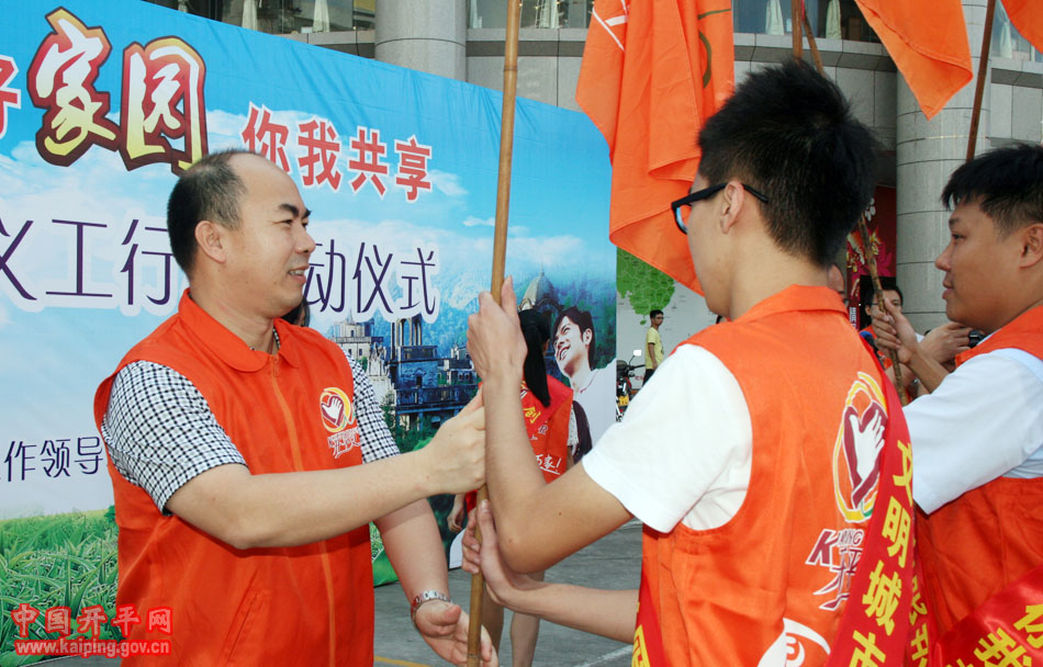 美化环境,你我齐参与。8月9日上午,市创文办、市公用事业局、团市委和市义工联联合举办的美好家园义工行动宣布正式启动。市委常委、市委宣传部部长、市创文办主任陈靖出席了启动仪式。