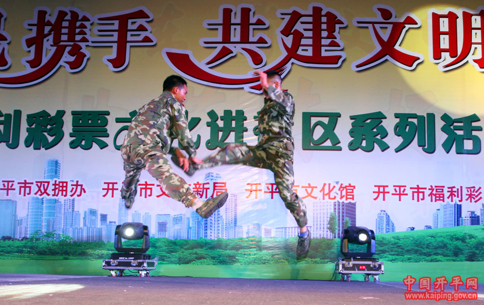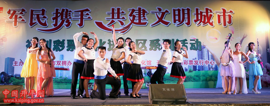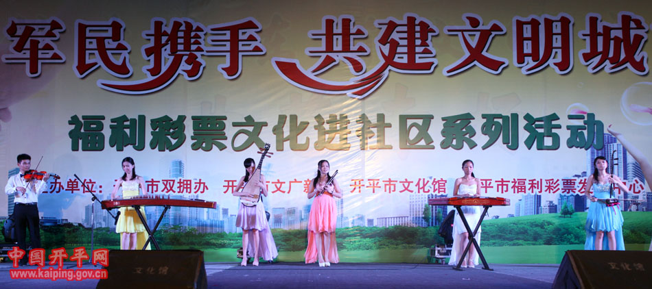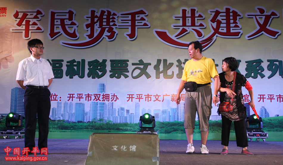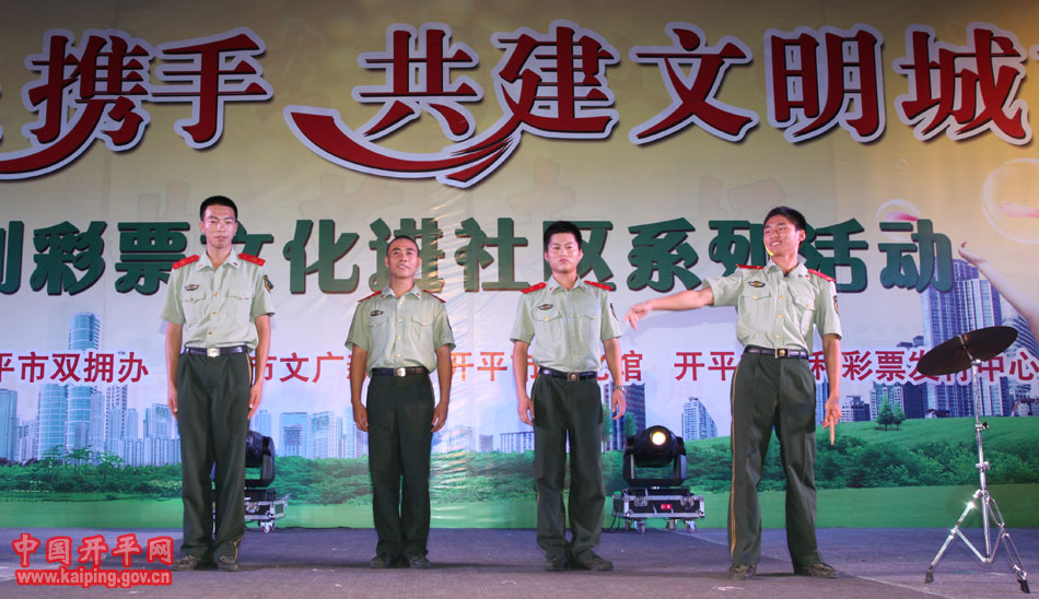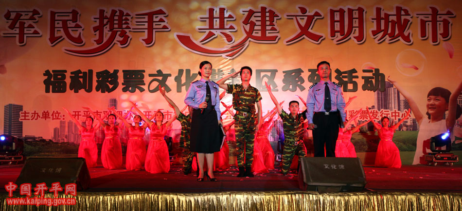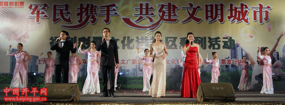 特别是在5日晚的“军民携手·共建文明城市—福利彩票文化进社区系列活动”中上演的开平民歌《洋妹喜嫁开平郎》,更是赢得现场观众的好评。该节目是用卖鸡调、夹房歌、禾楼歌等丰富的开平民歌音乐结合地方传统婚庆礼仪,讲述了美国姑娘洋妹与“开平仔”在美国同窗四年,共同研究建筑史,在研讨“开平碉楼的保护工作”中志同道合,共谐连理,洋妹嫁到开平来的故事,进一步展现了开平民歌深厚的文化底蕴和开平碉楼的迷人魅力。