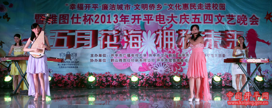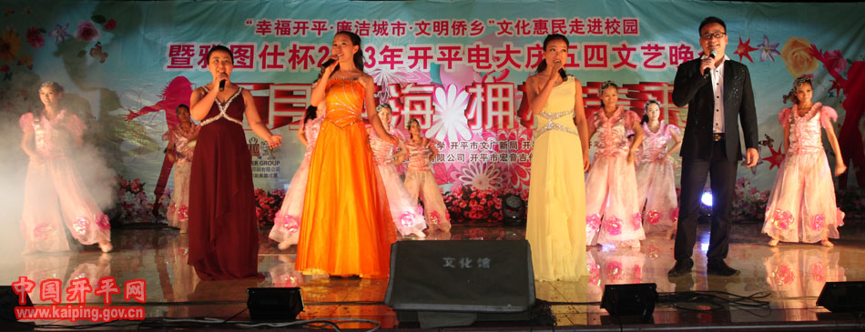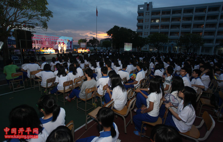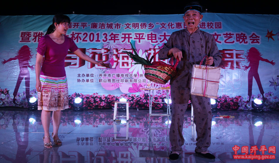 6月3日晚,“幸福开平·廉洁城市·文明侨乡”文化惠民——走进校园活动在开平电大热闹上演。市政协副主席、广播电视大学校长关开宗,市委组织、市文广局、市文化馆等部门领导到场观看了晚会,并为该校乡土文化人才培养基地民歌、表演艺术人才培养示范点揭牌。