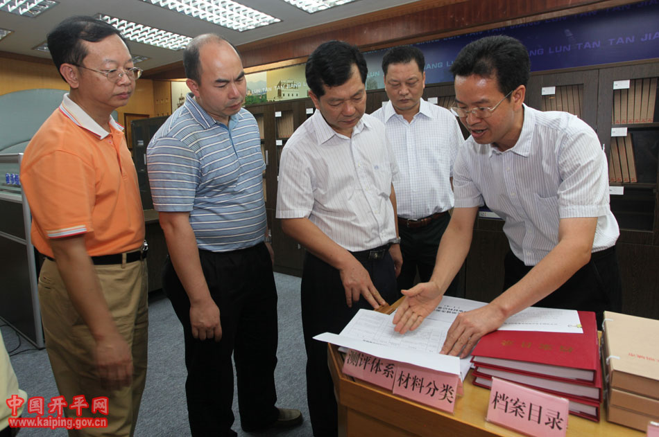 市委书记黄耀雄在听取创文办资料组组长邝学良介绍相关情况后,对资料整理的规范表示肯定,赞扬其体现侨乡开平特色的创新做法,鼓励资料组工作人员再接再厉,按照创文要求逐步完善资料收集整理工作。
