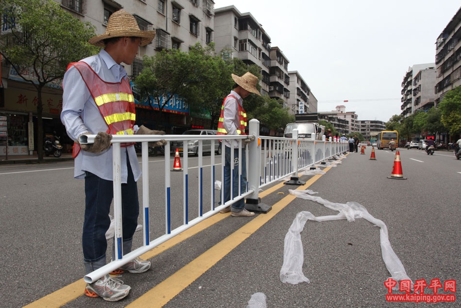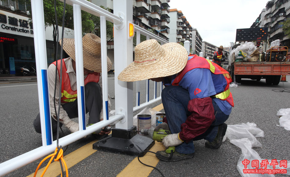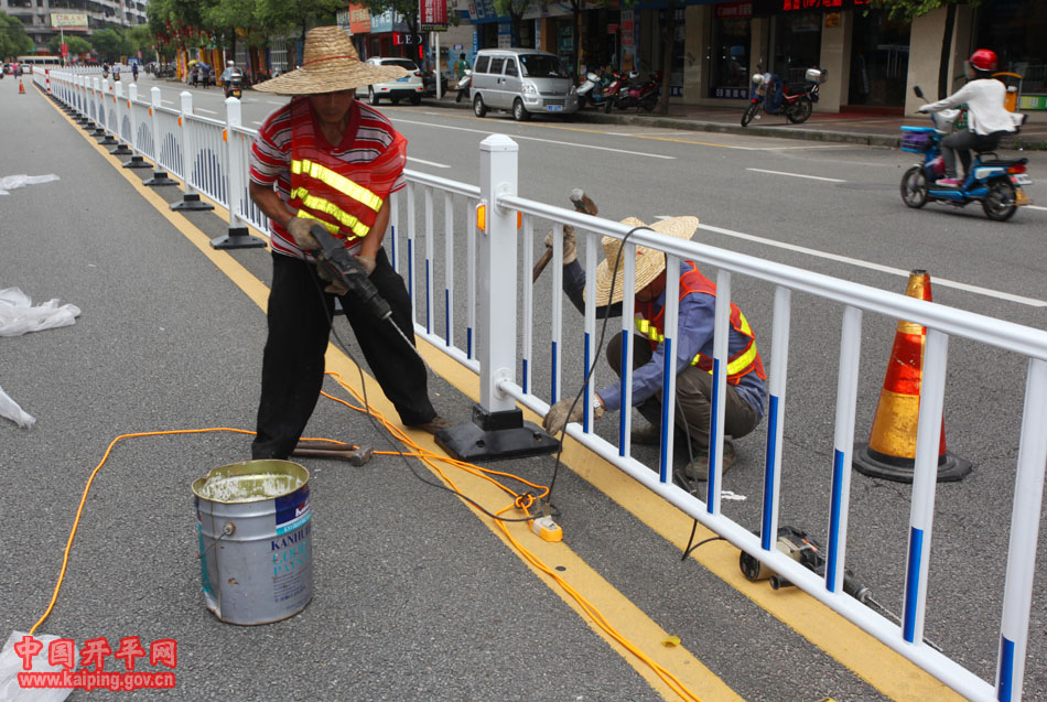 5月27日上午,市公安交警大队对市区部分重要路段交通安全设施进行完善,以规范行人和车辆的交通秩序,确保道路交通安全畅顺。