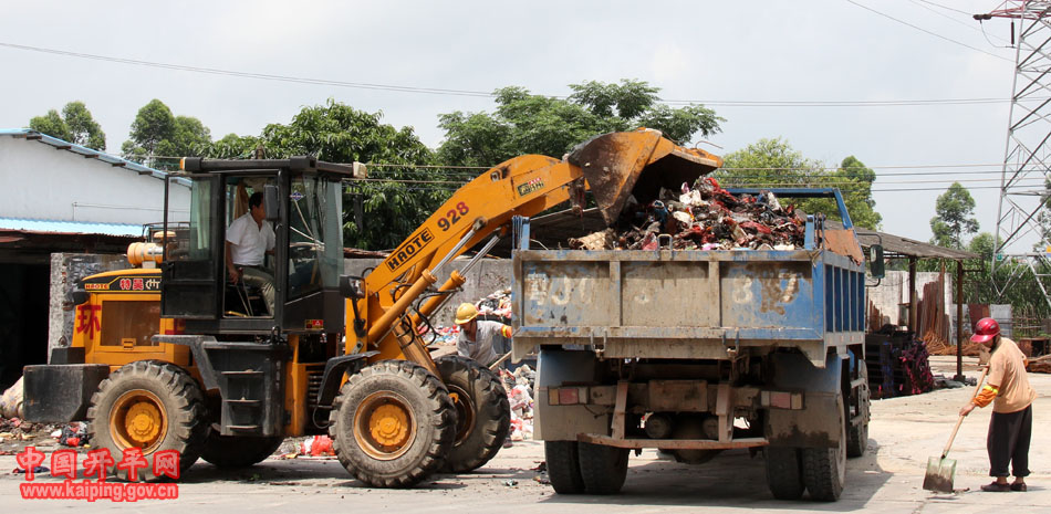 5月20日上午,海棠直播 迳头垃圾中转站地面垃圾堆积如山,环卫工人用铲车清理堆在地面的大量垃圾达5车。环卫部门表示,本来这里每天仅收集1车垃圾,但3年来,这里每隔10日左右就有一大堆垃圾倒满地,是迳头居委会各村把收集的垃圾都倒到这里来形成的。