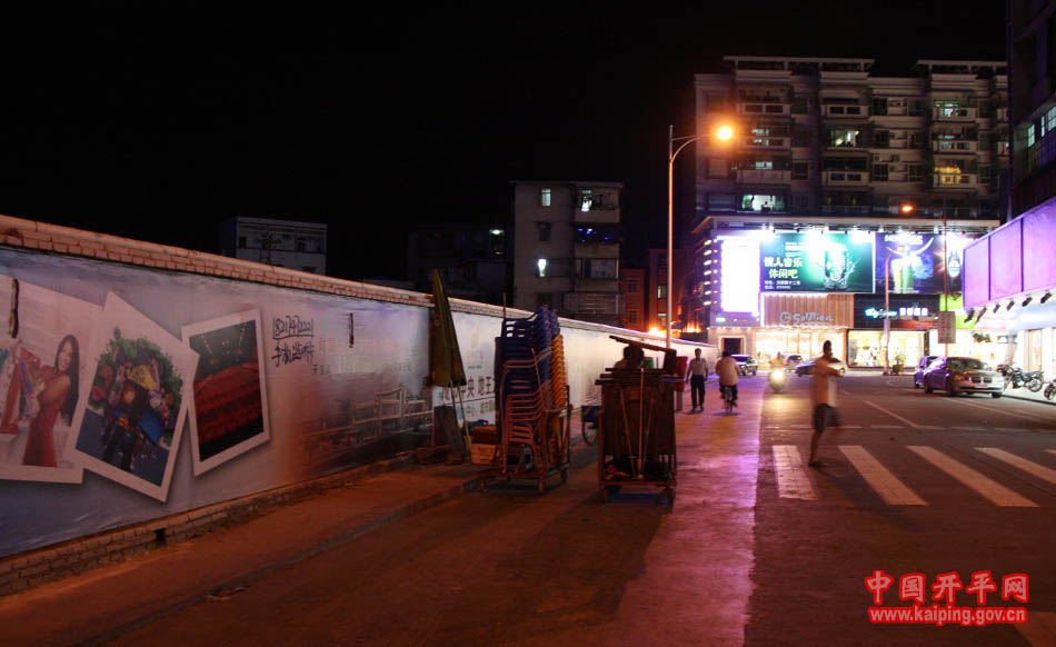文新路长沙公园改造工程围墙外准备营业的流动烧烤档