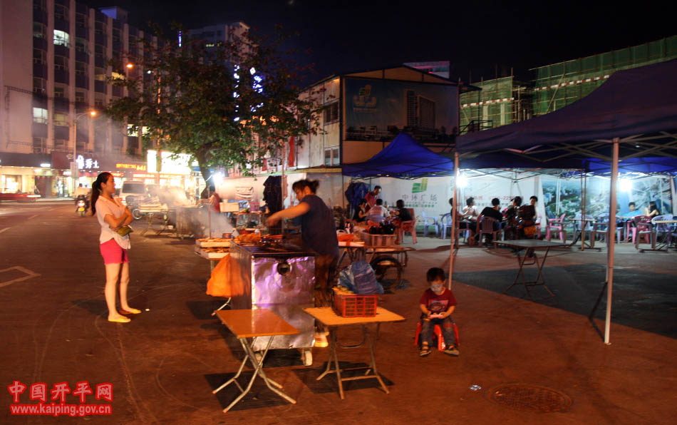 督查组发现晚上十点左右,文新路(长沙公园前)流动烧烤档陆陆续续开始摆摊,已率先“营业”的摊档吸引了不少市民帮衬。由于长沙公园改造工程正在进行,流动烧烤档的桌椅、烧烤炉等沿着工程外墙一字排开,使得路面原本就不宽的文新路更加紧张,占地经营严重阻碍了正常的交通秩序,油烟弥漫更影响市容市貌。