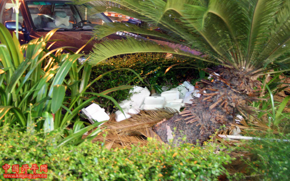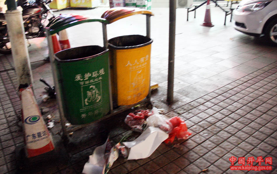 而海怡园楼下临江的商铺,“门前三包”做得不够到位,部分商铺在关电后用塑料袋把垃圾严严实实地包装好放在店门口,但更多的随意把垃圾扔在店前的花圃附近,甚至用一次性饭盒填满花圃。