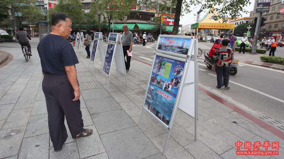 活动中,劝导人员采取鸣哨、摇旗、手势示意等方式对违法交通行为进行引导指挥,并在现场交警的协助下拦停不听从指挥的交通违法行为人耐心地进行解说教育。现场还设置了文明交通宣传图片展,图解电动车技术标准、新版驾驶扣分规则等,同时配合路边循环播放文明交通的宣传车,更直观地向市民倡导文明交通。