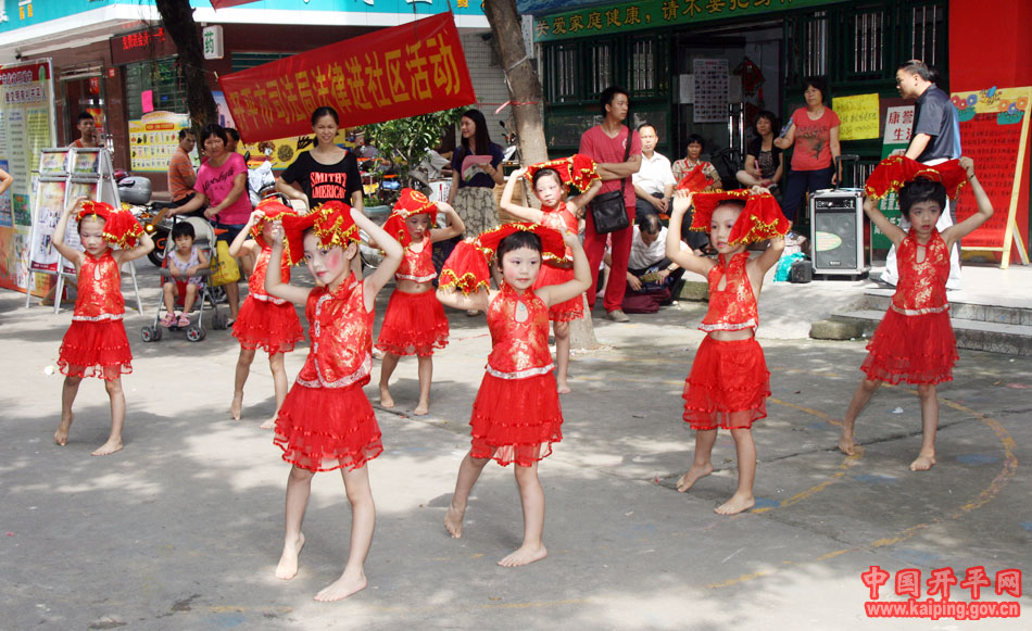 活动中,该社区金苹果幼儿园的小朋友和义工为市民带来精彩的舞蹈表演。可爱的小朋友们穿着象征喜庆的红色纱裙,手拿镶金边的方手绢,在舞蹈中幽默风趣地展现迎亲的全过程,小“新郎”掀起小“新娘”的盖头后轻吻脸颊的情景更惹得驻足观看的市民们捧腹大笑,童真童趣的展现让市民们共同“温习”了中华传统习俗中的婚嫁礼俗, 文明欢乐的氛围了每一位观众。