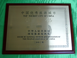 其中,旅游购物街全长0.8公里,共分三层,首层拥有各类经营门面近400家,顶层为空中花园。 市委、市政府通过多种形式的管理和教育手段进行两个文明建设,市民综合素质明显提高。在获得“全省双拥模范城”之后,我市又被评为“全国卫生城市”、“省精神文明先进城市”。三年来,我市共涌现出2个“全国精神文明先进单位”,近20个“省级文明先进单位”100多个江门市级“文明先进单位”。 (五)碉楼文化放异彩 宝剑锋从磨砺出,梅花香自苦寒来...... 通过一系列重在实效的创优活动,开平的旅游经济、城市建设、文明水平、环境面貌、服务水平、城市人民的精神风貌都发生了深刻的变化,一个充满浓郁碉楼文化色彩的现代化侨乡旅游城市已呈现在世人面前。 创优以来,开平旅游旺季更旺,淡季不淡,旅游总收入不断增长,有效带动第三产业的发展。2002年全年接待国内外旅游者149.37万人次,比上年增长14.90%,其中国内旅游者128.37万人次,国际旅游者21.00万人次。在接待国内外旅游者中旅游饭店住宿旅客19.10万人次。全市旅游总收入5.76亿元,比去年增长20.00%,其中旅游外汇1430万美元,旅游商品收入1.52亿元,旅游商品创汇311.30万美元。 市委书记赵瑞彰指出:争创中国优秀旅游城市,给开平带来了可喜的变化,带来了新的氛围,带来了不断向上的新精神。一是城市美丽了,二是开平的知名度提高了,三是开平的品位迅速向外界推开。同时,通过创优,党委和政府的凝聚力增强了,市民的荣誉感、责任感增强了,文明水平提高了。总之,创优对于推动开平经济和社会的和谐协调发展,起到了重大和积极的作用。希望党委和政府及部门还要严格按照确定的目标,高标准,严要求,齐心协力,抓紧落实,确保创优成功! 潭江水长归大海,开平旅游联五洲。二十一世纪的历史巨轮满载着68万开平人,75万开平海外侨胞的殷切期盼,在“三个代表”重要思想指引下,乘着党的“十六大”强劲东风,朝着中国优秀旅游城市的目标破浪前进。胡锦涛总书记视察广东发表的重要讲话,增创新优势,当好排头兵,更是激励着开平人民百尺竿头,不断进取,全力以赴把开平建成一个百业兴旺,环境优美,持续发展,人民幸福,社会和谐,具有独特碉楼文化特色的优秀旅游城市!