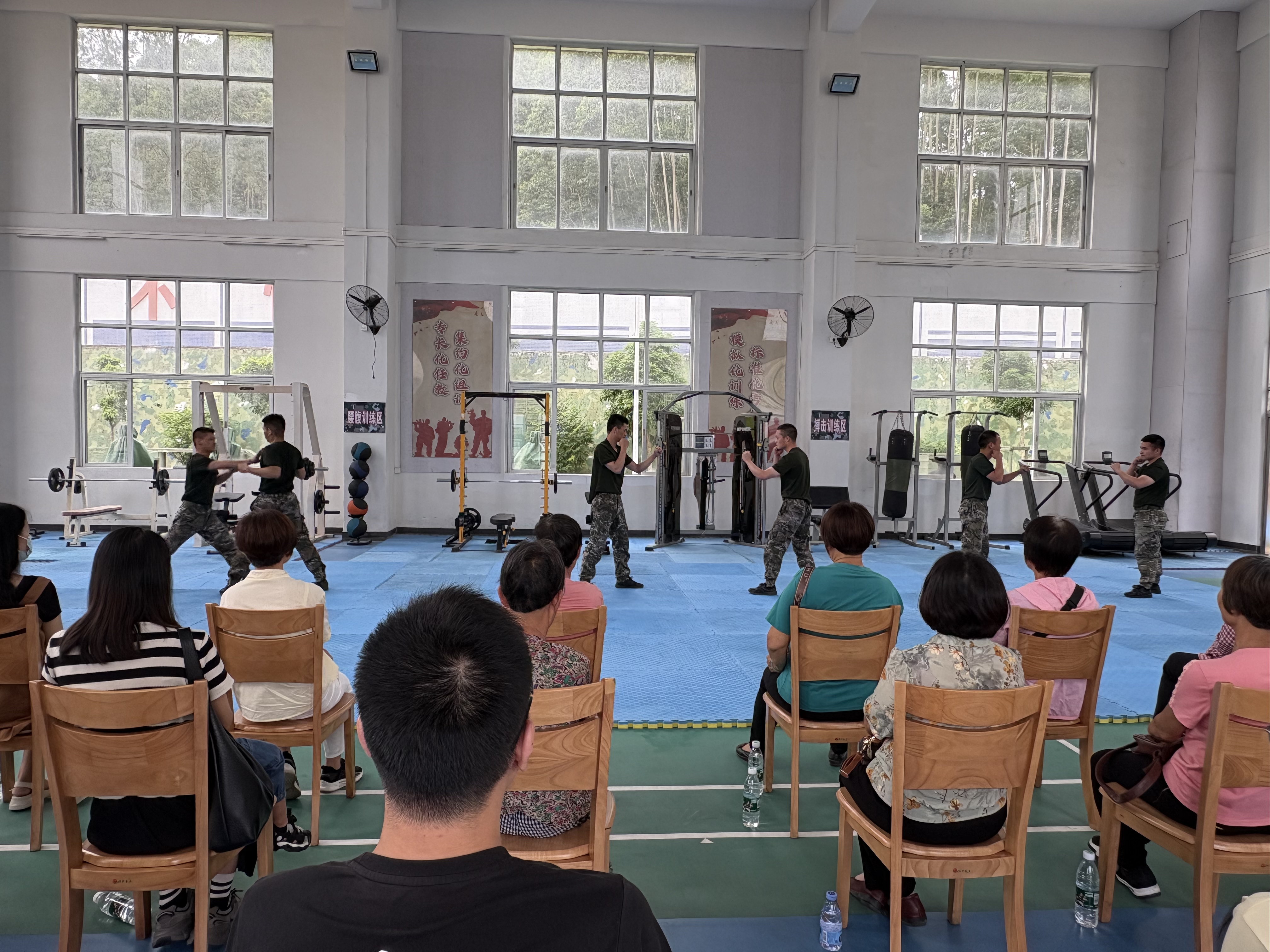 活动伊始,官兵们为兵妈妈和军嫂们带来了一场震撼的军体拳表演。整齐划一的动作、刚劲有力的招式、响彻云霄的口号,充分展现了军人昂扬的斗志与过硬的军事素养。兵妈妈和军嫂们目不转睛,不时爆发出热烈的掌声,眼神中满是骄傲与心疼,为子弟兵们的坚毅与付出而感动。