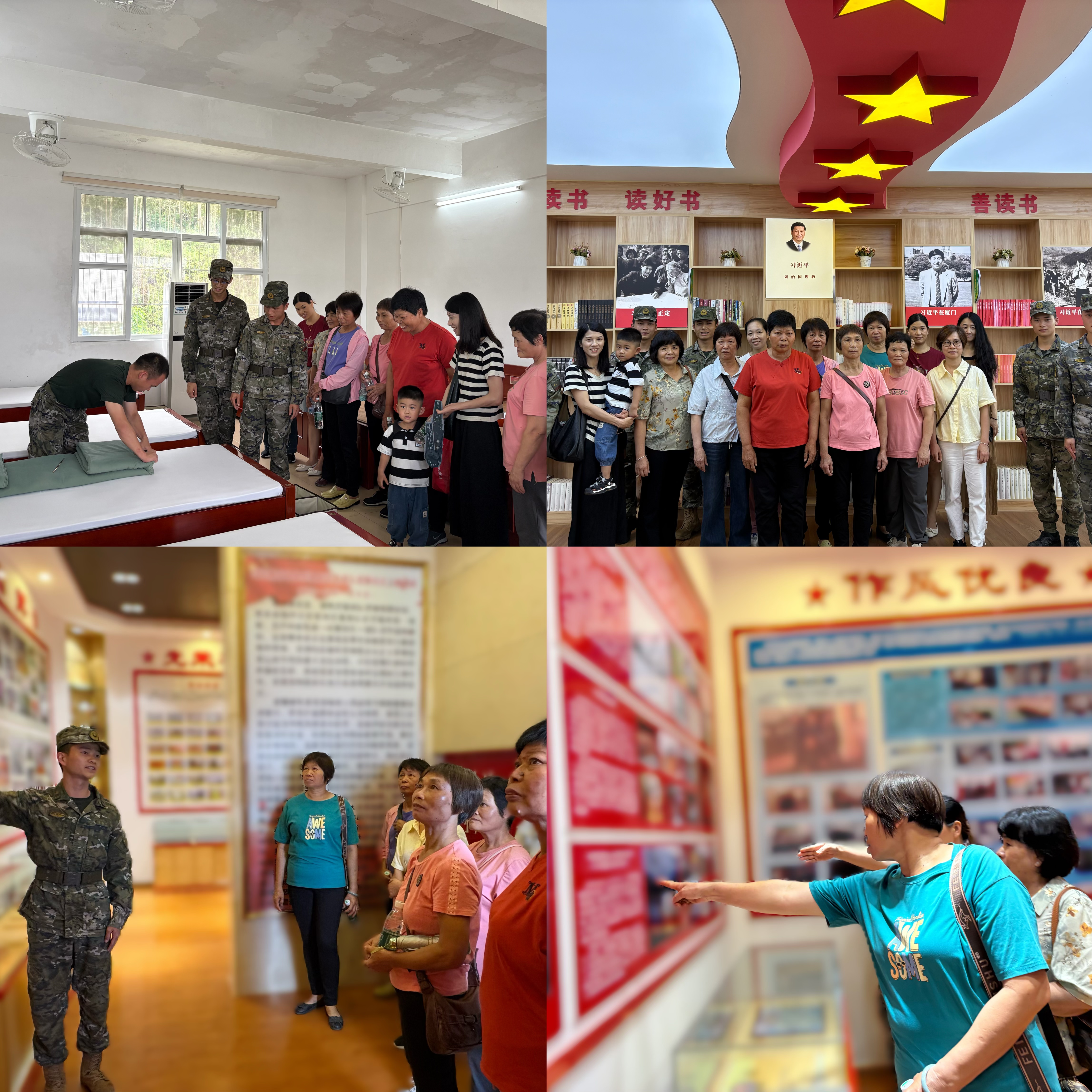 随后,在官兵的引导下,兵妈妈和军嫂们参观了军营宿舍、图书室和荣誉室。走进宿舍,“豆腐块”般的被褥、摆放有序的物品,让大家直观感受到军队严明的纪律和良好的作风;图书室里,丰富的藏书、安静的学习环境,展现出官兵们积极向上的学习氛围;荣誉室内,一面面锦旗、一块块奖牌、一张张珍贵的照片,诉说着部队的辉煌历史与卓越功绩,兵妈妈和军嫂们深受触动,为亲人的选择倍感自豪。“儿子在部队立功,我今天亲身感受军人的日常,现在更懂军人背后的坚守与奉献!”兵妈妈关女士感慨地说。