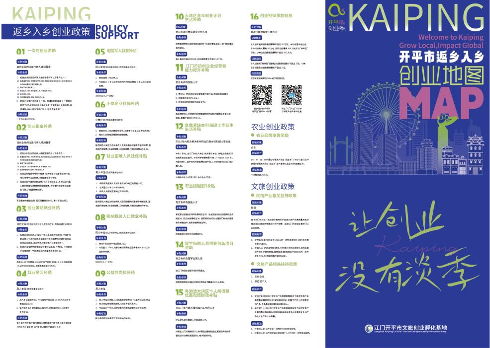 本次创业周是开平推动创业工作的一个生动缩影,也是探索吸引人才返乡入乡创业的重要成果。近年来,海棠直播 扎实开展整县推进农文旅融合发展试点工作,激活5A世遗碉楼景区和赤坎华侨古镇双引擎,吸引一大批有志青年和返乡人才投身乡村,发展民宿、文创、书店、咖啡店等新兴业态,为乡村注入新活力,助力实施“百县千镇万村高质量发展工程”。开平打造返乡入乡创业大礼包政策保障,涵盖一次性创业资助补贴、创业租金补贴、创业担保贷款、农业品牌培育奖励、民宿产业和文创产品方面扶持等政策,配套提供共享工位、人才公寓、人才饭堂等资源,全面优化创业就业环境,助力返乡创业者发展。此外,通过发挥“开创π”的平台优势,推行“总部+项目”模式,累计吸引70个创业团队进驻,辐射带动海棠直播 相关产业就业人数超2万人,真正实现“以点带面、全域开花”。